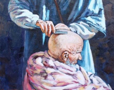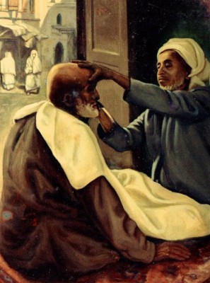 „The Barber in the Souk” „Цирюльник на базаре” (картина маслом) С 2013 г. с кайфом бреюсь опасной бритвой пять раз в неделю, в три прохода.