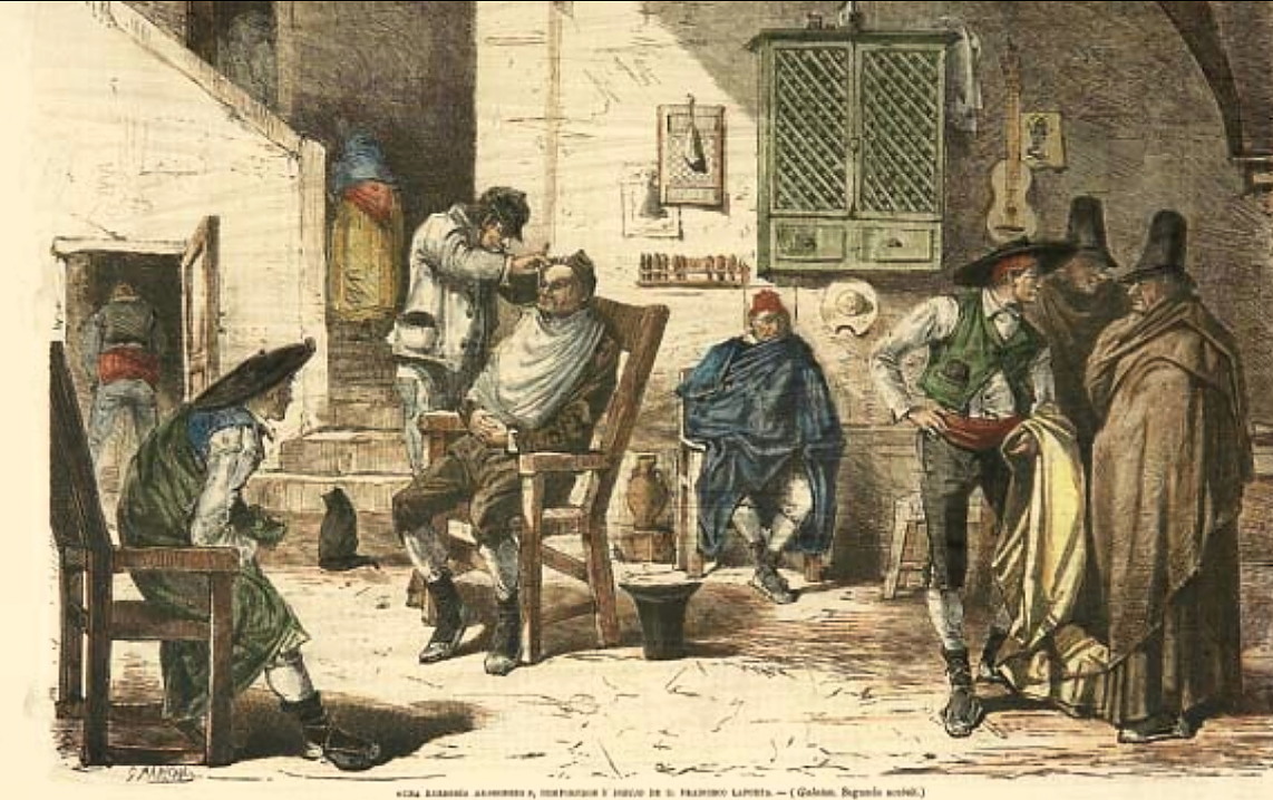 Francisco Laporta Valor или Francesc Laporta i Valor (1849-1914). Франсиско Лапорта Валор или Франсиск Лапорта и Валор - испанский художник и гравер. „An Aragonese barber” „Арагонский цирюльник” 1875 г. Взглянем поближе: С 2013 г. с кайфом бреюсь опасной бритвой пять раз в неделю, в три прохода.