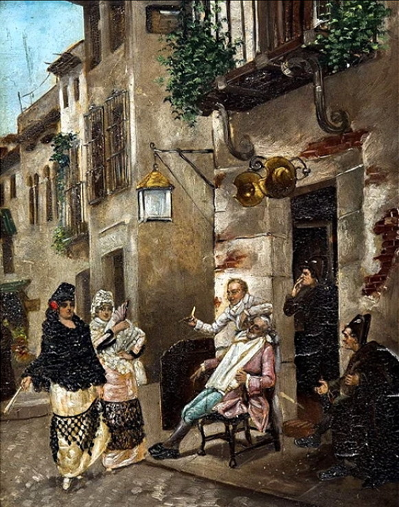 Francisco Laporta Valor или Francesc Laporta i Valor (1849-1914). Франсиско Лапорта Валор или Франсиск Лапорта и Валор - испанский художник и гравер. „An Aragonese barber” „Арагонский цирюльник” 1875 г. Взглянем поближе: С 2013 г. с кайфом бреюсь опасной бритвой пять раз в неделю, в три прохода.