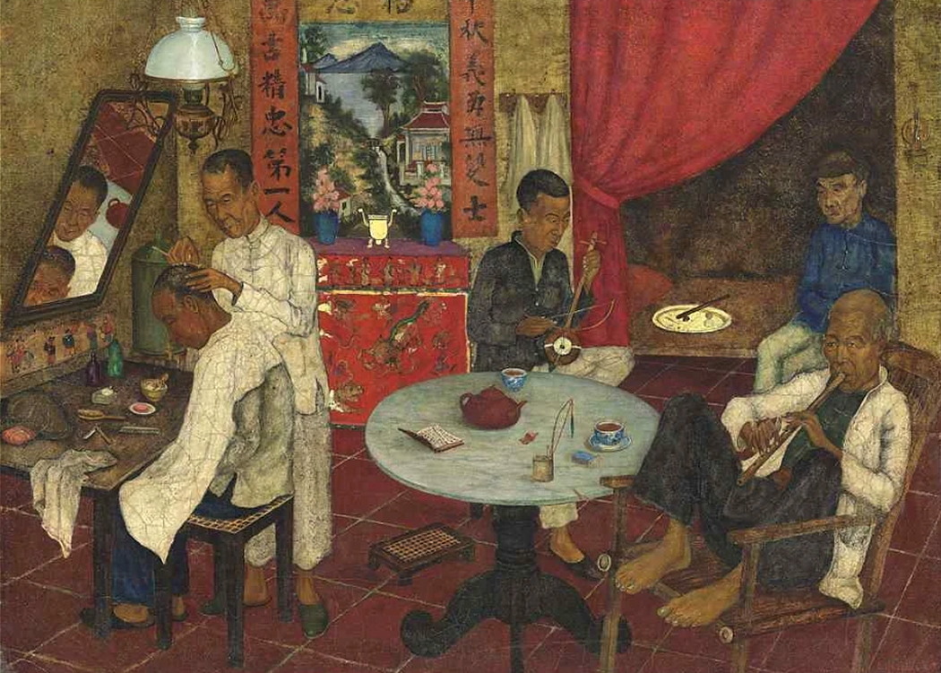 „A Chinese barber's shop” „Китайская цирюльня” 1928 г. Взглянем поближе: Та же картина встречается в более красным видом: Взглянем поближе: С 2013 г. с кайфом бреюсь опасной бритвой пять раз в неделю, в три прохода.