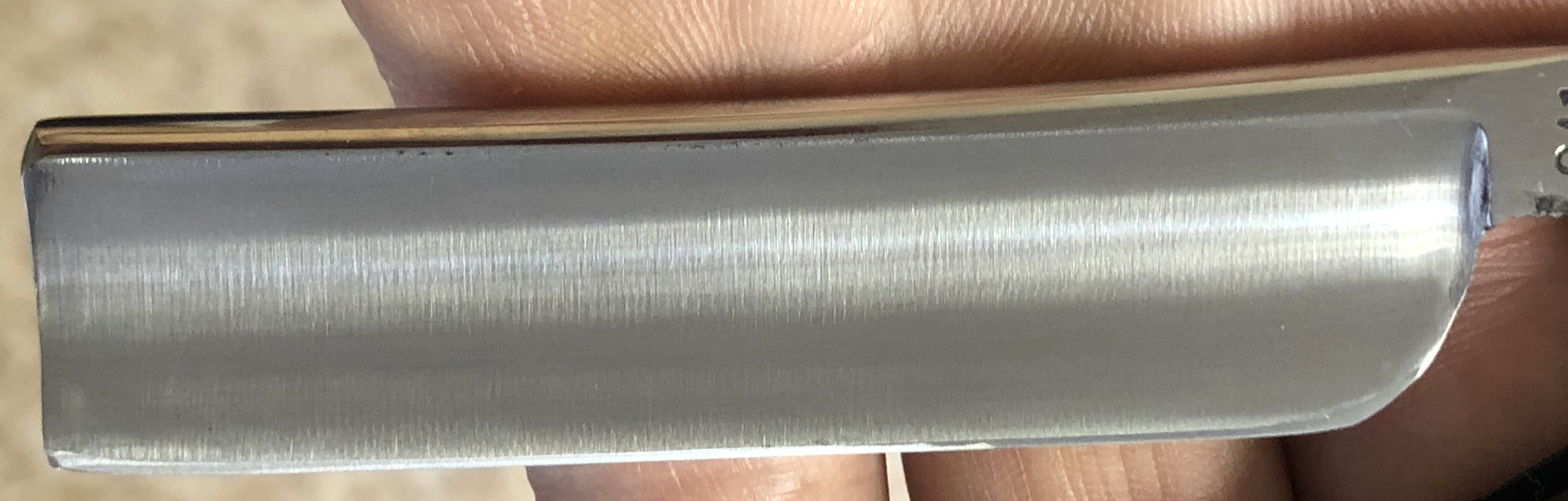 Клинок в очень хорошем и по всей видимости непользованном состоянии.Ручку оригинальную снял и поставил самодельную,от какой то советской бритвы, ручной работы.Материал-прозрачное орг-стекло.Как раз клиночек хорошо зашел в свой новый сюртук. Бритва будет неплохим рабочим инструментом, без какой либо претензии на историческую ценность. На мой взгляд, клиночек ещё долго послужит...