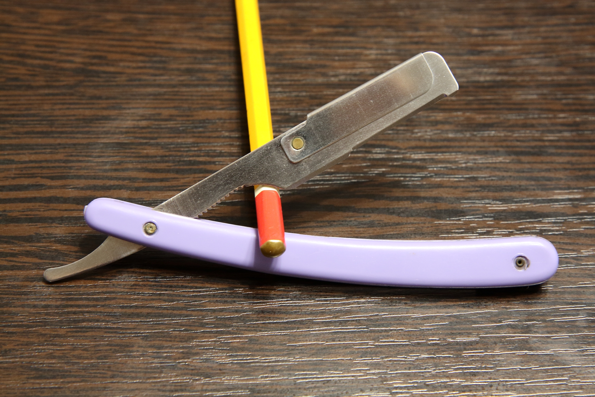Шаветка из 70х годов, производство завода Электроавтомат г. Алатырь. Под половинку стандартного двухстороннего лезвия (DE). Пришла в хорошем виде, почистил вручную пастами и сделал дезинфекцию Стериллиумом. Зажим работает штатно. Подойдет как барберам, так и пользователям, лезвия широко доступны и дешевы. Приятная и нечастая фиолетовая ручка. Цена 2000 руб. Spoiler Show