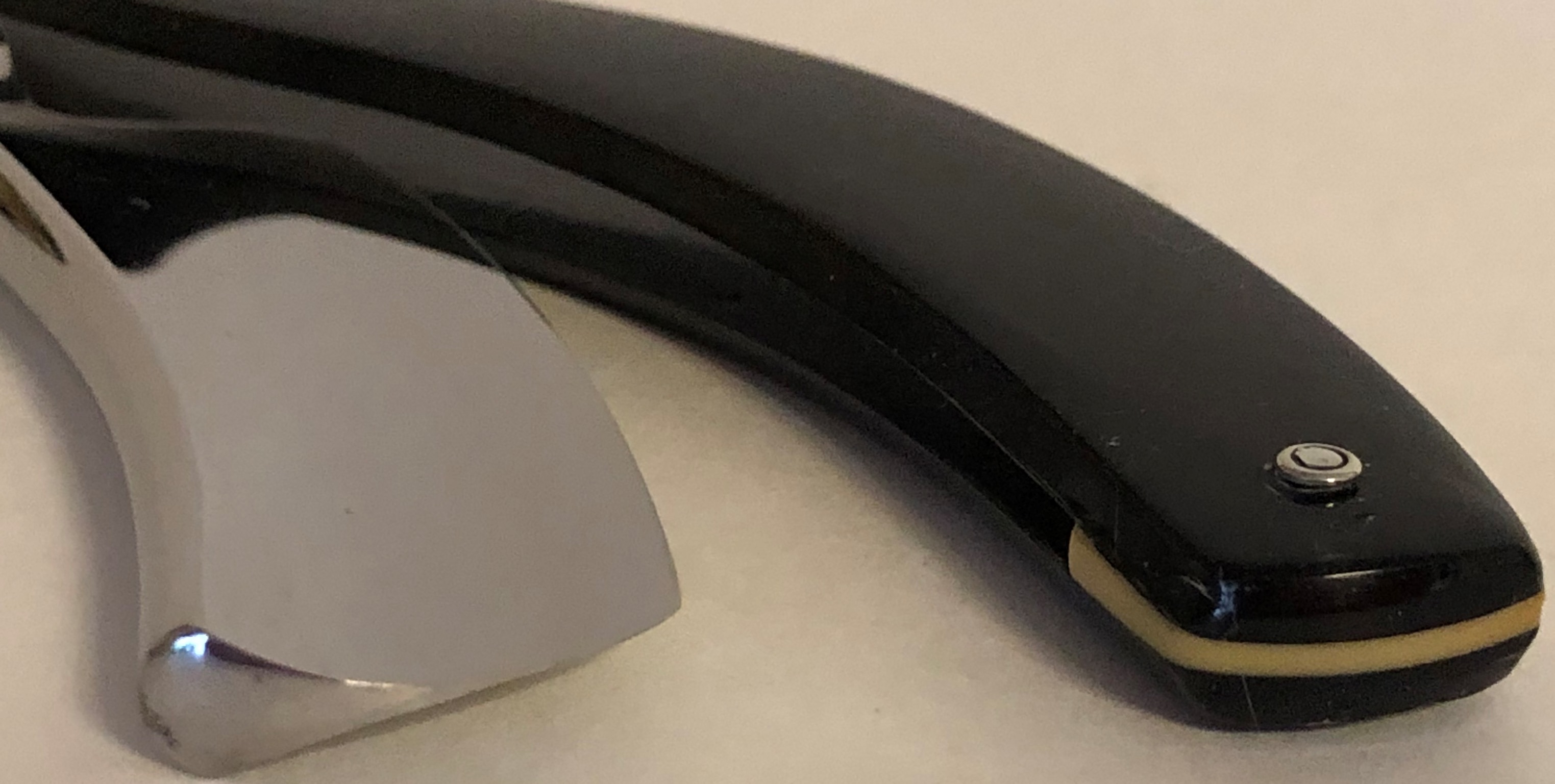 Клинок находится в идеальном состоянии.Оригинальная шлифовка и полировка.Родную оправу проклеил намертво и поменял пины на двух-цветные втулки.Идеальная геометрия клинка.Кромочка равномерна по всей длине и еле заметна.Перед отправкой будет заточена и доведена до комфортного бритья.