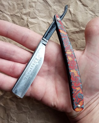 Продаётся от Тараса.тарас, позволь добавить, что на полотне надпись: „TUNGSTEN” - он же вольфрам. Значит, сталь с добавлением вольфрама, что предполагает повышенной износостойкостью. С 2013 г. с кайфом бреюсь опасной бритвой пять раз в неделю, в три прохода.