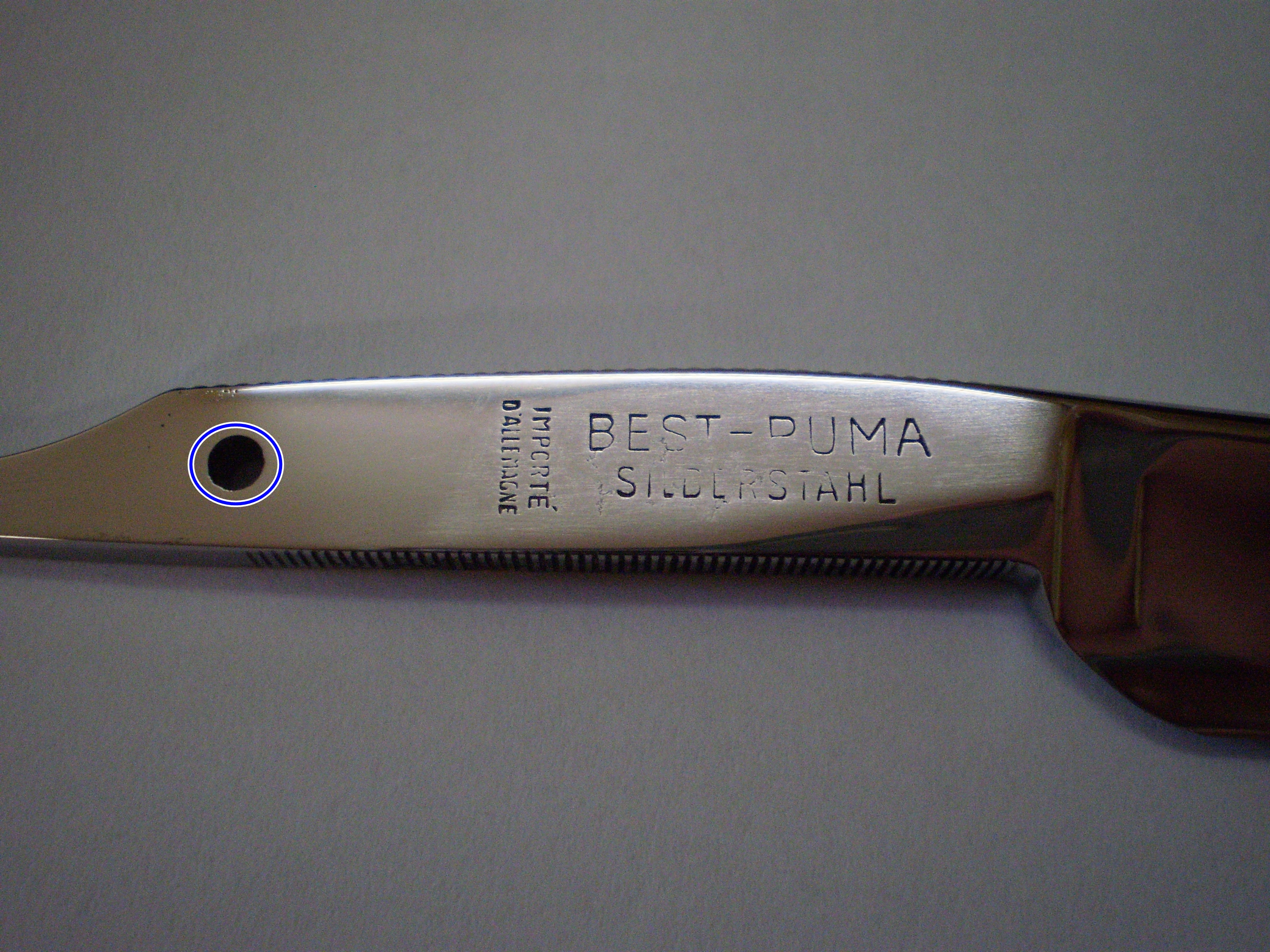 Заклёпки (пины) для бритв, установка, изготовлениеТак в условиях задачи дано, что как раз шлифовать нельзя, дабы сохранить клеймо)). Если именно 0,4мм нужно компенсировать, то это ровно по две шайбы типа продаваемых Ревизором из Золингена, они заявлены как 0,2мм толщиной.