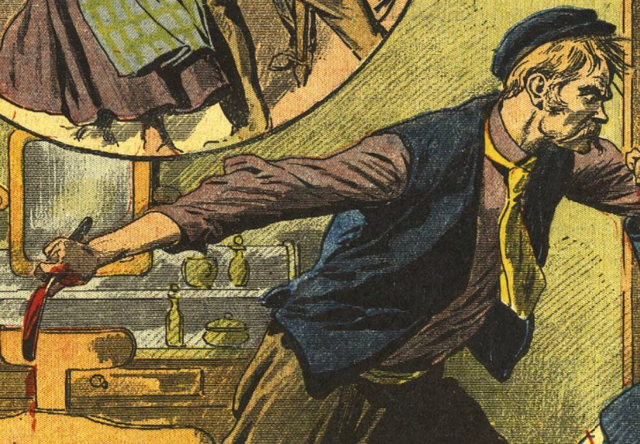 Опасная бритва в искусстве (картины, рисунки, фото, тату)Raoul Thomen (1876-1950). Рауль Томен - бельгийский иллюстратор, карикатурист и автор комиксов. Он рисовал для журнала „L'Oeil de la Police” („Полицейский глаз”) - французский еженедельный журнал, основанный в январе 1908 года и исчезнувший в июле 1914 года. В журнале публиковались детективные и полицейские романы, драматические факты, страстные или трагические события, драмы любви, драмы жизни, драмы смерти, а также криминальных новостей во Франции и за рубежом.