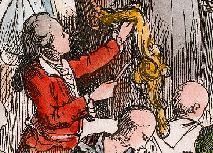 „La Dеsolation des Filles de Joies” „Опустошение дочерей радости”, около 1780 г. (Проститутки, арестованные и с побритыми головами во время правления Людовика XVI в Париже). Цирюльник с бритвой: Та же гравюра встречается перевернутой на 180 градусов и в таком исполнении: Цирюльник с бритвой: С 2013 г. с кайфом бреюсь опасной бритвой пять раз в неделю, в три прохода.