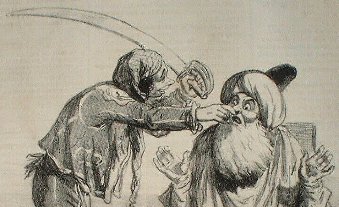 Опасная бритва в искусстве (картины, рисунки, фото, тату)Charles Amеdеe de Noе, known as Cham (1818-1879). Шарль Амеде де Ноэ, известный как Чам, был французским карикатуристом и литографом.
