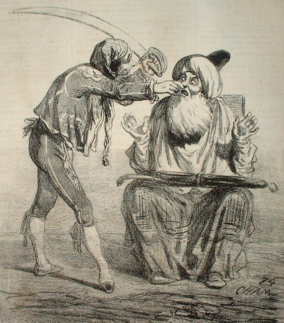 Опасная бритва в искусстве (картины, рисунки, фото, тату)Charles Amеdеe de Noе, known as Cham (1818-1879). Шарль Амеде де Ноэ, известный как Чам, был французским карикатуристом и литографом.