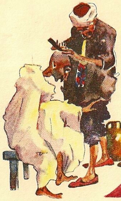 „Scenes et types algeriens barbiers” „Сцены и виды алжирских цирюльников” Взглянем поближе: С 2013 г. с кайфом бреюсь опасной бритвой пять раз в неделю, в три прохода.