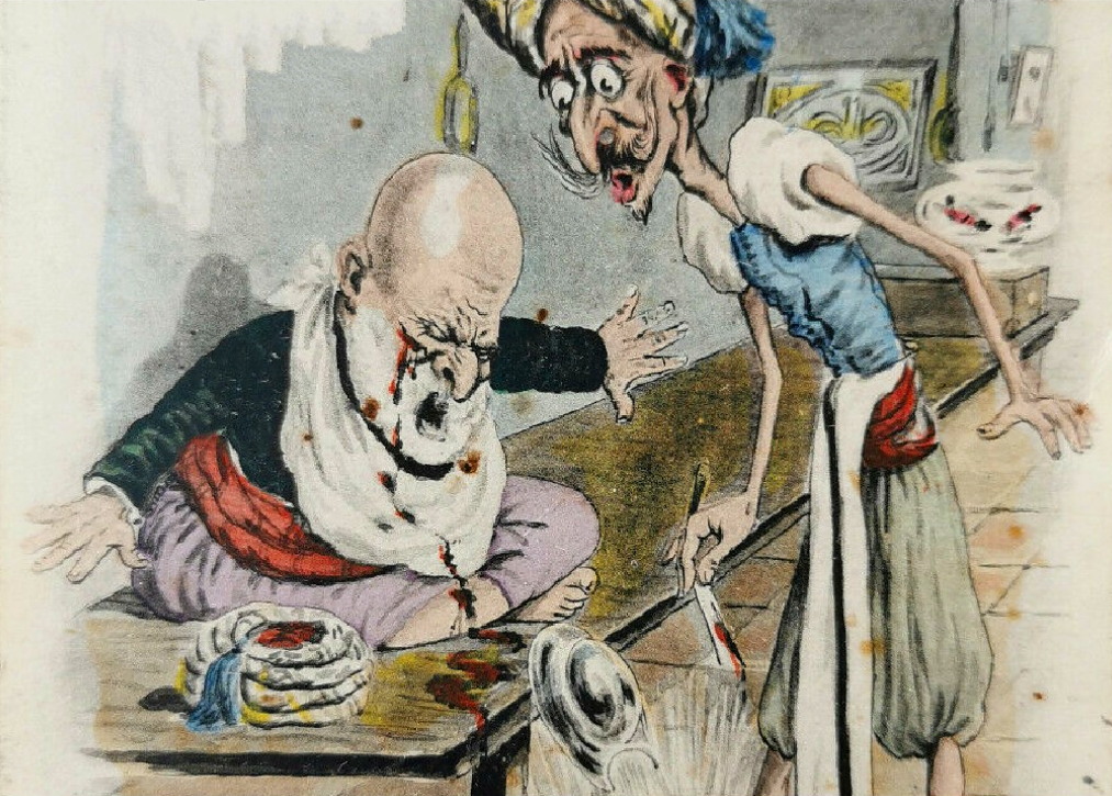 „Barbier Figaro raser empereur Maroc” „Цирюльник Фигаро бреет императора Марокко” Здесь дела серьезные, будут брить саблей С 2013 г. с кайфом бреюсь опасной бритвой пять раз в неделю, в три прохода.