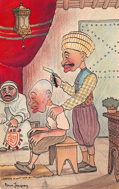 „Scеnes Algеriennes - Le Barbier Maure” „Алжирские сцены - мавританский цирюльник” Порезал, немного С 2013 г. с кайфом бреюсь опасной бритвой пять раз в неделю, в три прохода.