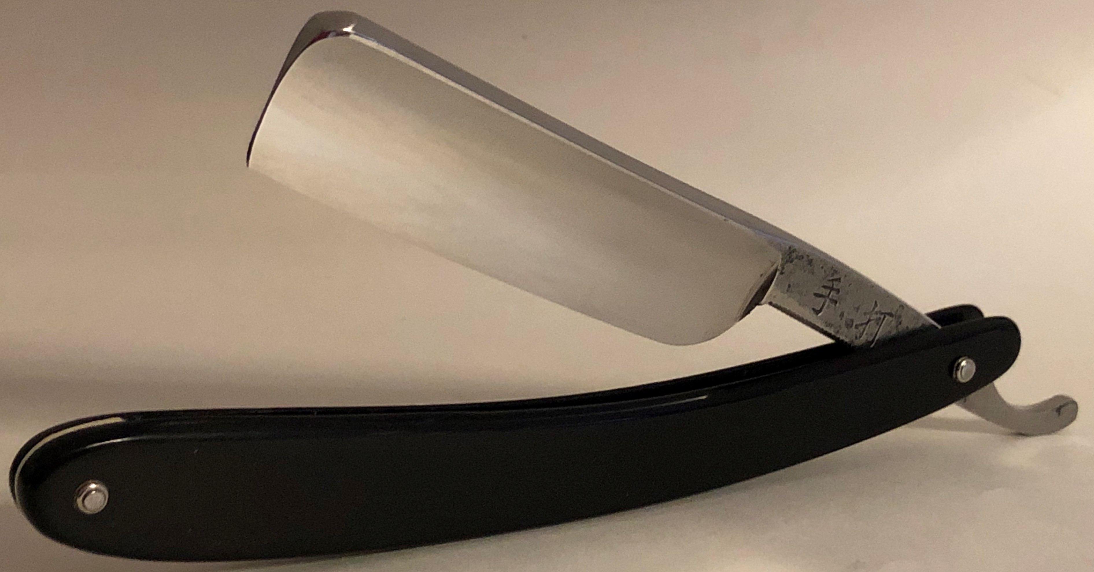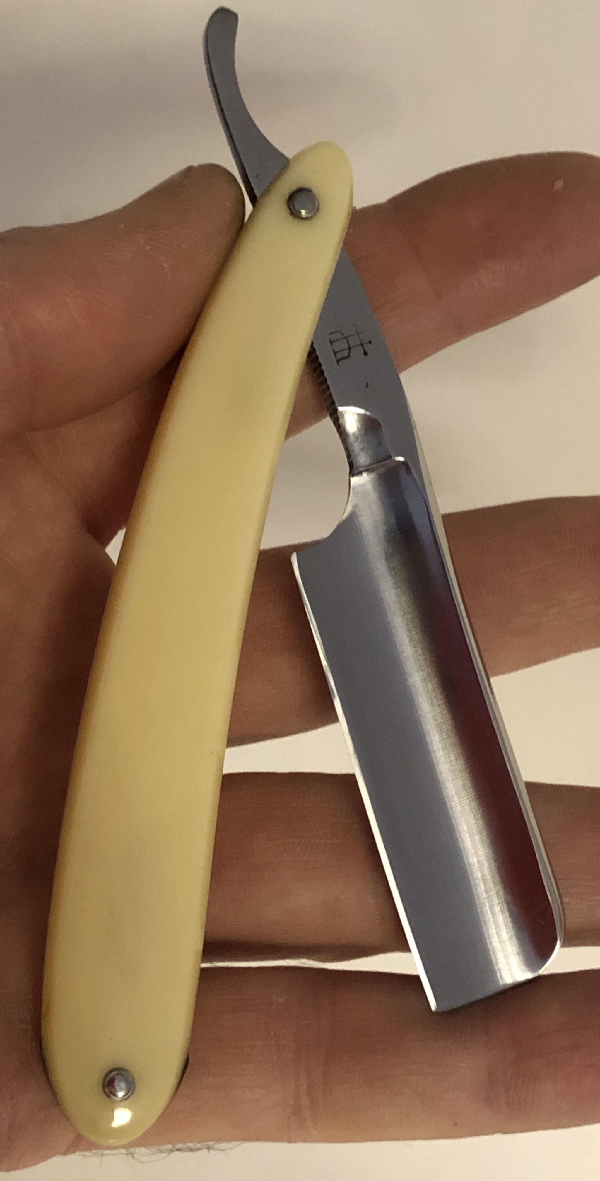 На мой взгляд, бритвы подобной формы лезвия незаслуженно обходят вниманием многие любители клинковой бритвы.Хотя, лично для меня, фреймы очень красивы внешне, имеют всегда отличные, качественные стали на клинке, довольно мягко и быстро точатся и доводятся(за счет своей формы лезвия),ну и способны выдавать бритье,близкое к эталонному.Ну,а из за того, что данные бритвы стоят совершенно недорого, то грех не иметь нечно подобное в коллекции. Бритва заточена и готова к бритью.