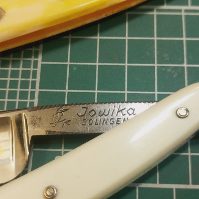 Jowika Stahlwarenfabrik Eugen Weber & Altenbach KG. Была основана в Золингене до 1928 года, под названием Johann & Wilhelm Kleinewefers GMBH, Messerfabrik. JWK для краткости, отсюда JoWiKa. В 30-х годах 20 века фирма была куплена Ойгеном Вебером (Eugen Weber), изменившим название фирмы, добавив свою фамилию и фамилию жены Альтенбах (Altenbach). Это пока не из архива. Да и вообще надо не в эту тему. Ремонт опасных бритв, звонить с 11-00 до 23-00, +79267729357, (whats app, telegram, VK), спросить Олега.