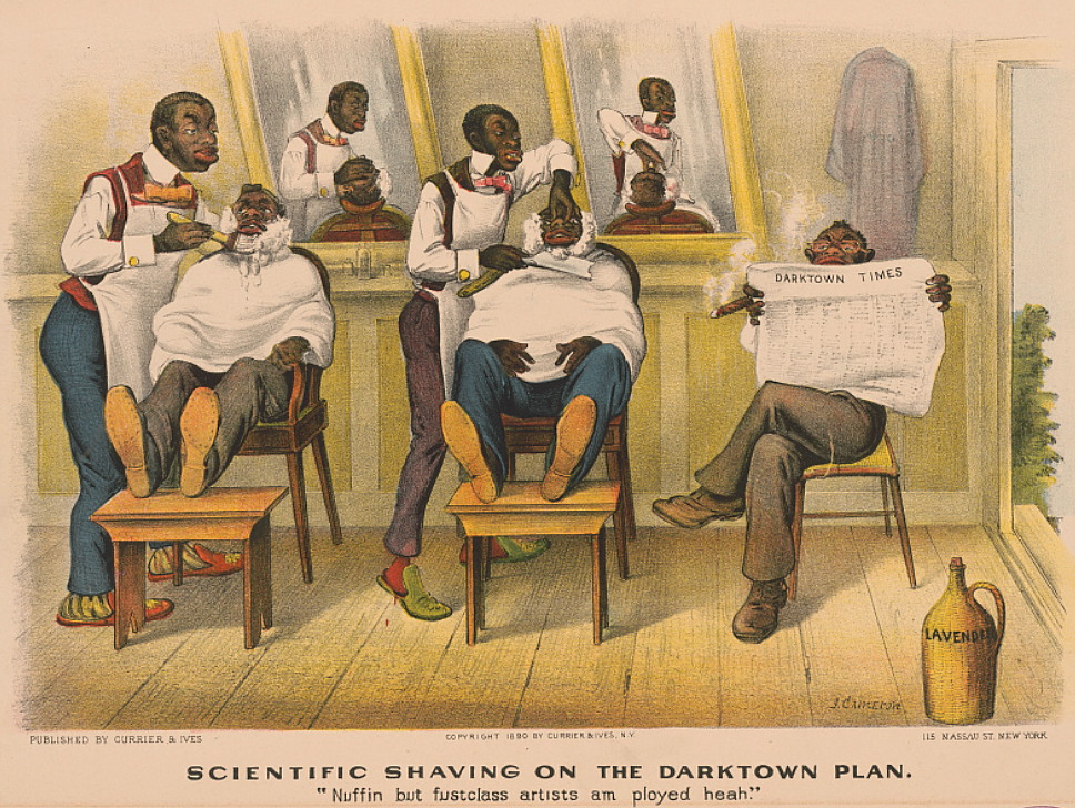 „Scientific shaving on the darktown plan” „Научное бритье на плане темного города”, 1890 г. Взглянем поближе: С 2013 г. с кайфом бреюсь опасной бритвой пять раз в неделю, в три прохода.