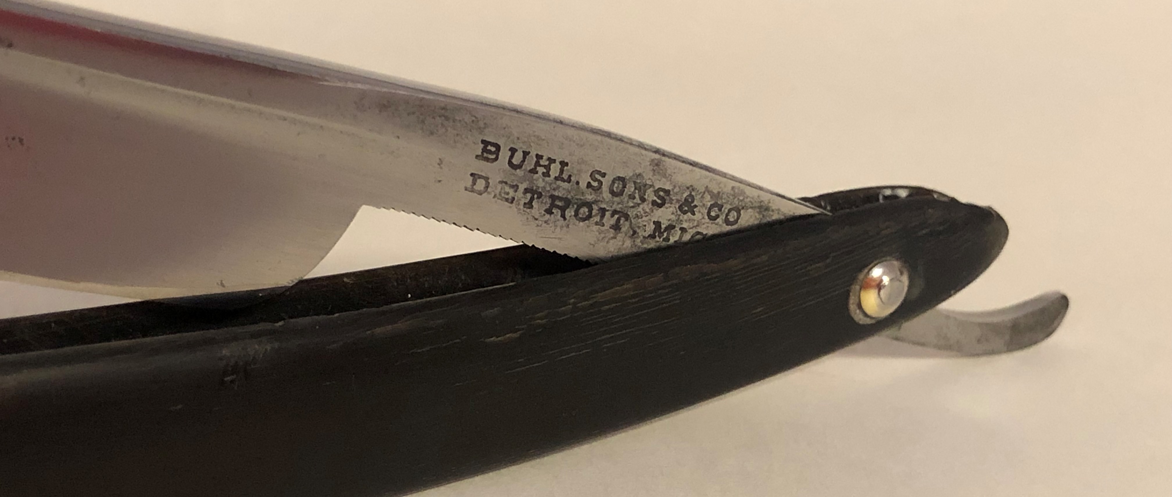 Давно хотелось поработать с этим древнем клиночком, который лежал у меня долгое время, но все руки не доходили.Не часто видел вот такие формы на американских бритвах.А тут еще раскопал из своих закромов такую старинную роговую французскую оправу,из натурального рога.Ну и как то все само собой сошлось. Клинок оставил с элементами патины на эрле.Продольный сатин на полотне до 800 грит.Умеренная полировка.Геометрия на уровне.Поставил вот такие сферические немецкие шайбы.Заточена и готова к бритью. Не пропустите бритву ,за совсем небольшие средства,практически за стоимость советской.