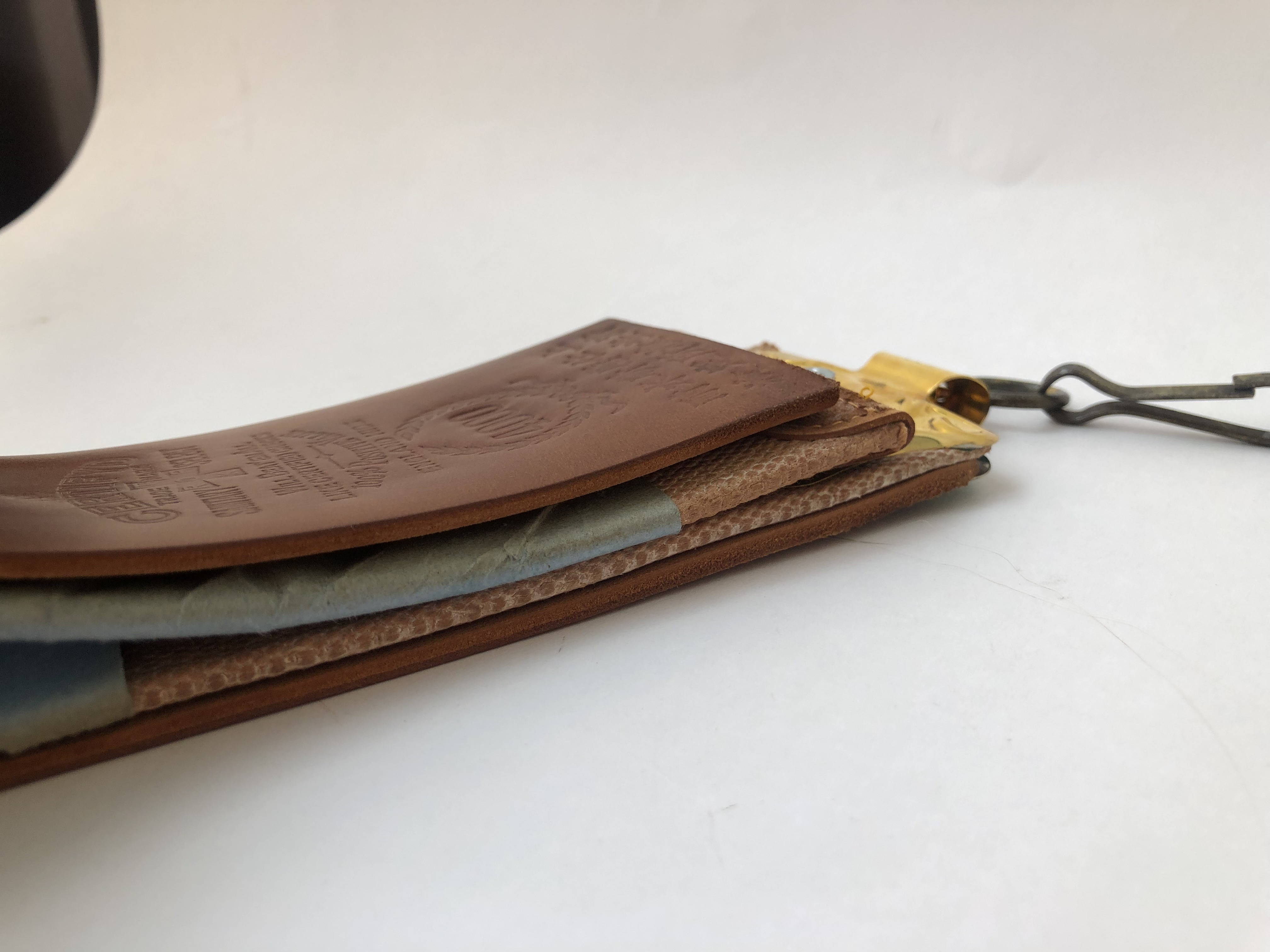 Кожа лошади исключительного качества отделки:светлая, мягкая, эластичная, без прожилок, порезов, царапин(за исключением небольшой вмятинки, которая со временем, от работы должна выправится).Кожа плотная, не такая как у ремней Канаяма и примерно соответствует 80000-90000 модели. От постоянных правок умеренно плотная кожа размягчится и будет работать тоньше.Хотел бы отметить достаточно редкую ширину полотна, что соответствует ремням для профессионального пользования.Вторая стропа-льняной холст умеренно мягкий и не требующий дополнительной подготовки.