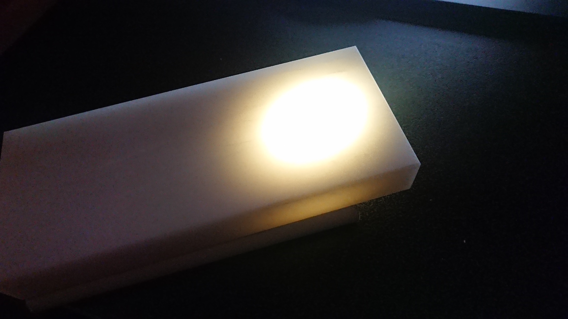 Телефон со включенным LED-фонарем приложен вплотную к камню. Толщина камня 25 мм.