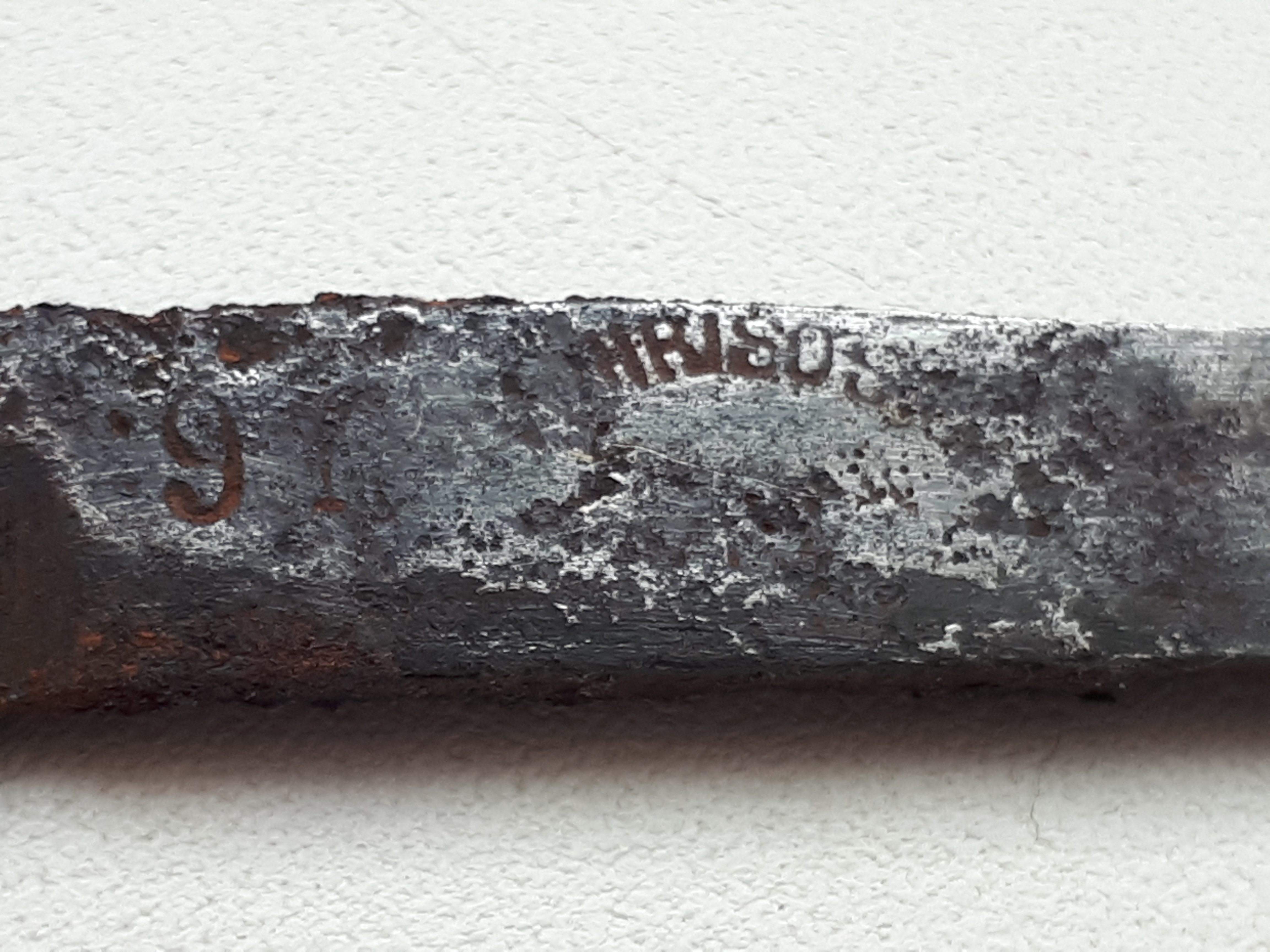 Цифры - насколько я знаю, на германских бритвах ими обычно внутризаводской номер партии маркировали, без документации фирмы они ничего не скажут. Надо ржавчину с эрля отчищать и смотреть, чего там написано. В Золингене было несколько тысяч производителей, и у многих богатый ассортимент. Я не могу по одной форме клинка установить, кто её выпускал. Смысл только что-то устанавливать здесь, если полотно прогнило насквозь...