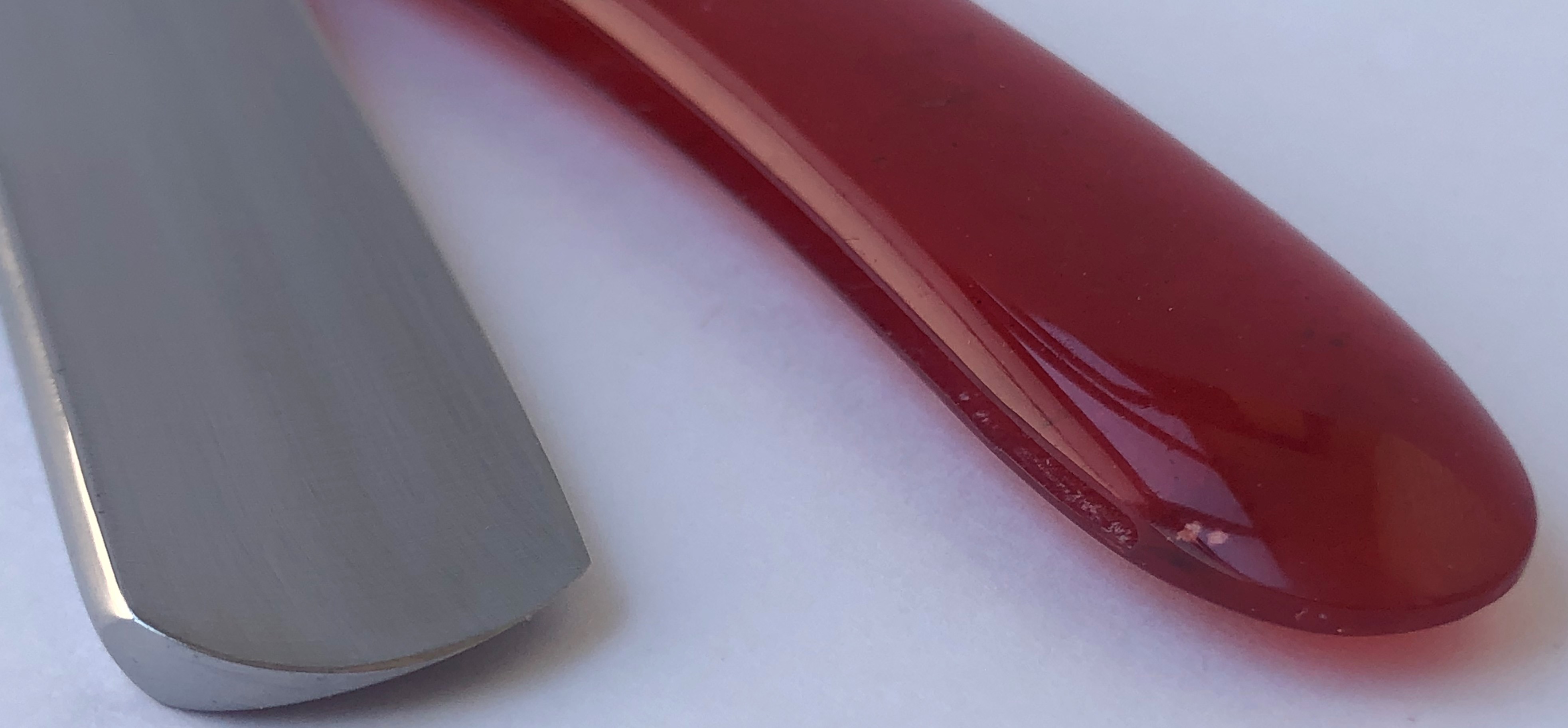PARKER 510. Ширина полотна-21 мм. Толщина обушка-5.8 мм. Полная вогнутость. Шведская углеродистая сталь, как наиболее удачная для производства бритв. Бритва в хорошем состоянии, без активных следов пользования. Требовала разборки, чистки и полировки полотна.На этих бритвах действительно очень качественная,"звонкая"и умеренно твердая шведская сталь.Крупная и удобная бритва.Можно рекомендовать любому пользователю,с разным уровнем опыта бритья.Кромочка равномерна по всей длине.Заточена и готова к бритью. Не пропустите совершенно недорогую брендОвую бритву,но с прекрасной сталью и возможностью дать чистое и мягкое бритьё. Цена-5800 р с доставкой. ПРОДАН Spoiler Show Spoiler Show