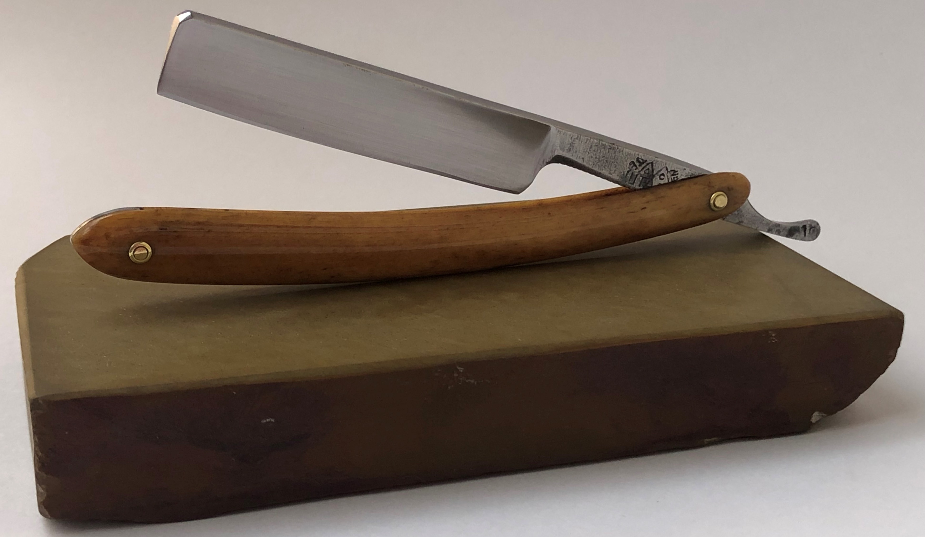 Ширина полотна-16 мм. Толщина обушка-4.5 мм. Форма лезвия ближе к полу клину. Бритва в очень хорошем состоянии, без активных следов пользования. Была разобрана, чтобы почистить район осевого пина, но в тоже время сохранив красивую старинную патину на эрле, что придаёт оригинальный вид, соответствующий преклонному возрасту бритвы.Что интересно в данном экземпляре, так эта шикарная оправа из натуральной кости. Такую ручку вижу впервые на таких бритвах. Кость плотная, без трещин, завораживающего "медового" оттенка.Была заново отполирована,пины поменяны на немецкие втулки.Само полотно косметически отшлифовано и умеренно отполировано.Очень красивая и редкая бритва. Заточена и готова к бритью. Не пропустите редкую вещь! Цена-5500 р с доставкой. ПРОДАН Spoiler Show Spoiler Show