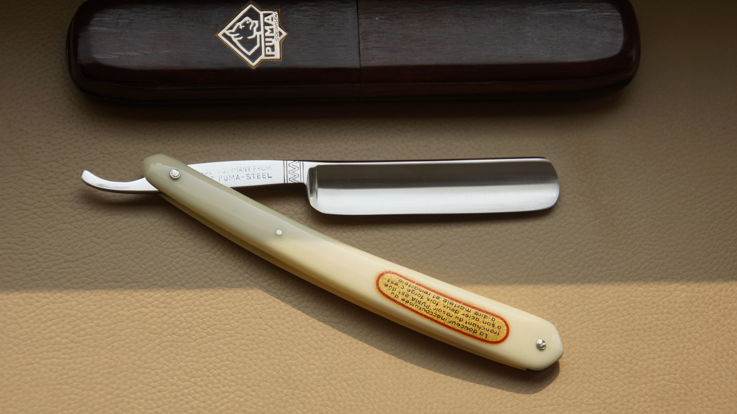 Производитель: Lauterjung & Sohn, Puma-Stahlwaren Германия, г. Золинген Ручка из целлулоида, с металлическим логотипом. Состояние на фото. Бритва заточена и готова к бритью. В комплекте также родной футляр. ПРОДАНО 10) Puma No. 1938, 5/8 Show