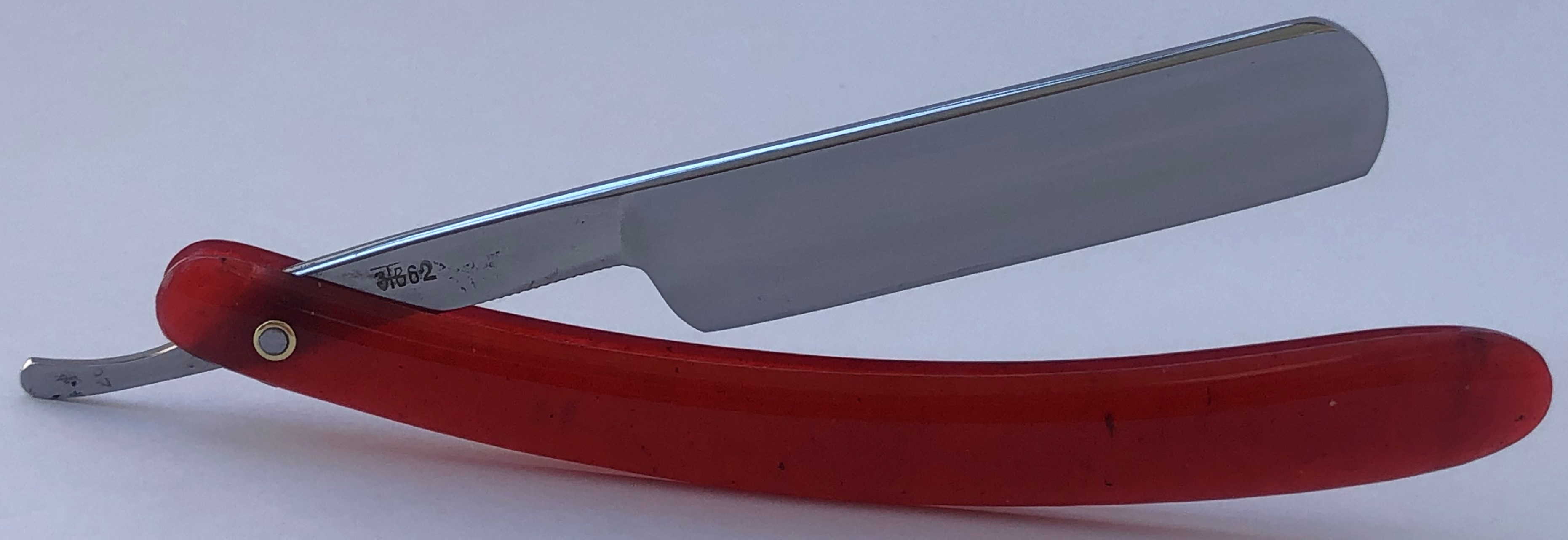 Ширина полотна-20 мм. Толщина обушка-6 мм. Форма лезвия-1/2 Углеродистая сталь. Время производства около 1968 года. Бритва в идеальном состоянии,без следов пользования.Был кривой осевой пин,поэтому пришлось разобрать и заново переустановить.Сталь и кромка чистые, без дефектов.Идеальная геометрия полотна.Кромочка равномерна по всей длине и практически незаметна.Тяжёлая, отличная бритва.Заточена и готова к бритью. Цена-11500 р с доставкой. ПРОДАН Spoiler Show Внимание! Важная информация! Spoiler Show