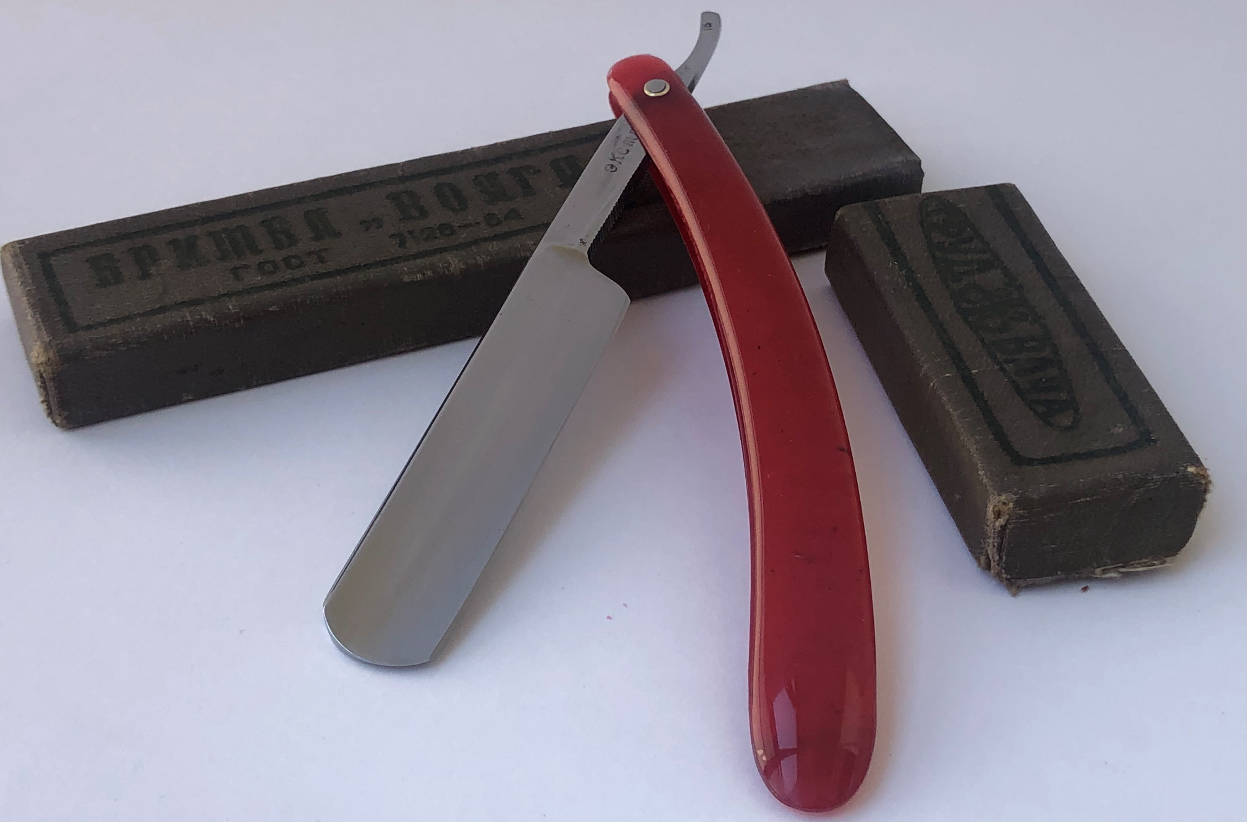 Ширина полотна-17 мм. Толщина обушка-4.5 мм. Полная вогнутость. Бритва непользованная. Не разбиралась и не ремонтировалась. Заводскую заточку переточил до состояния комфортного бритья. Специально не стал трогать небольшое и незначительное пятно с обратной стороны клинка, чтобы сохранить оригинальную шлифовку и полировку и тем самым оставить бритву р родком и коллекционном состоянии.Идеальная геометрия полотна:кромочка равномерна по всей длине.Не пропустите редкую бритву советских времен в свою коллекцию.Такое сейчас встречается не часто.Заточена и готова к бритью. Цена-7500 р с доставкой. ПРОДАН Внимание! Важная информация! Spoiler Show