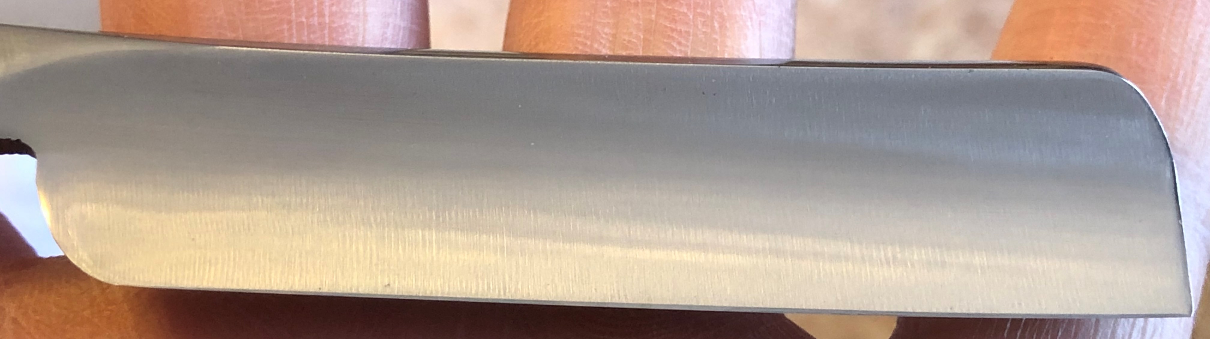 Бритва в пользовании не была.Клинок в идеальном состоянии.На самых тонких абразивах был освежен металл,с повторением "родного" гринда, а также умеренно отполирован.Оригинальную ручку заменил на эффектную оправу от японского послевоенного донора.В отличие от оригинала сейчас бритва смотрится намного интереснее.Само полотно чистое от разного рода видимых дефектов. Идеальная геометрия:кромочка равномерна по всей длине.Двух-цветные японские старинные пины, с добавлением внутренних шайб, для порядка.Отличный и недорогой вариант для новичка. Не пропустите.