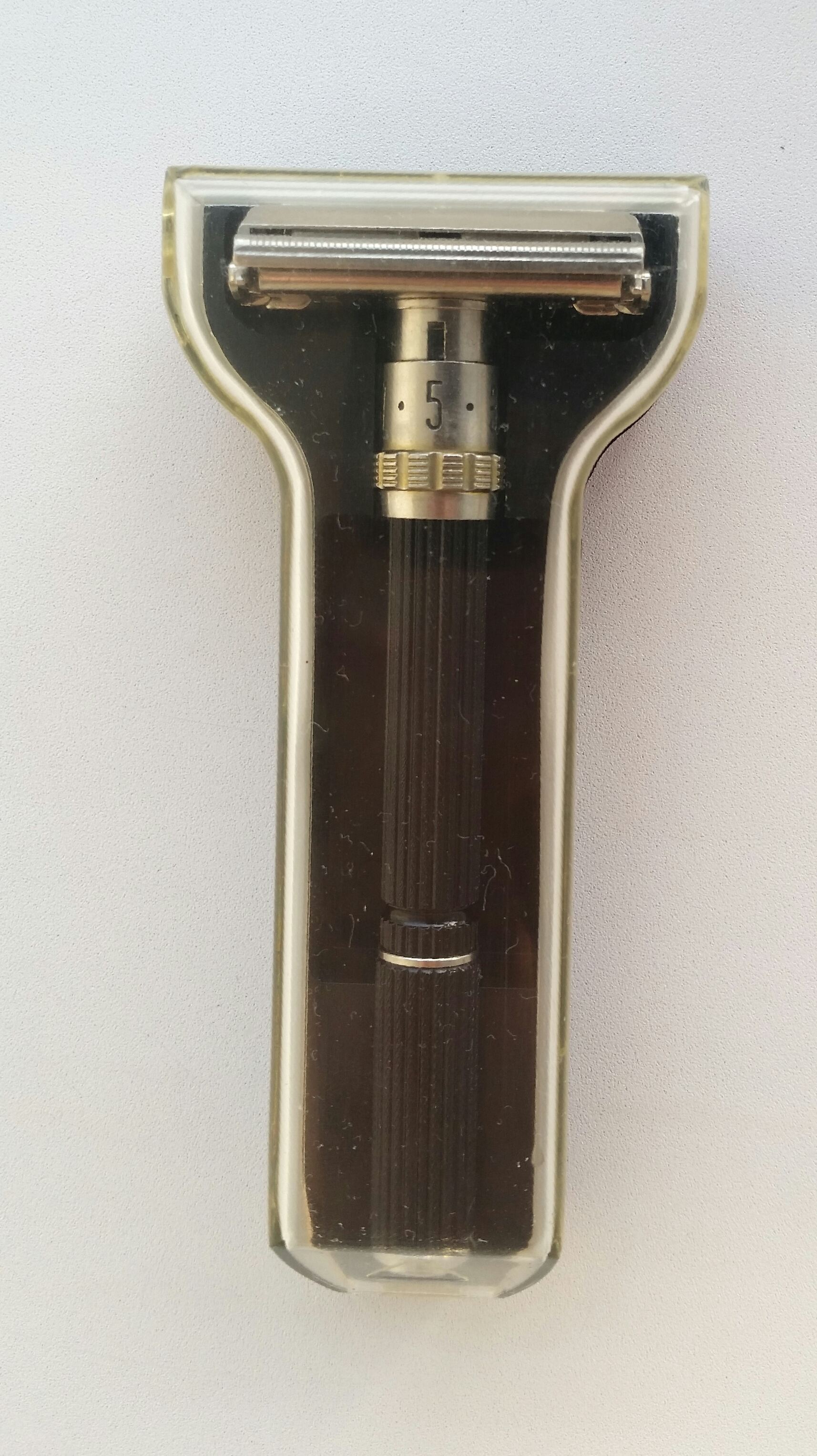 Регулируемая безопасная бритва Gillette Adjustable, США, 1973 год (код Т-2), конструкция "бабочка". Black Beauty (Черная Красавица), можно сказать легенда, более ранняя версия с металлической опорной плитой. Станок почистил, внутри и снаружи. Механизм смазал индустриальным маслом, чтобы все крутилось веселее. Механика отличная, мягкое открытие, работают все регулировки. Цена - руб. Spoiler Show