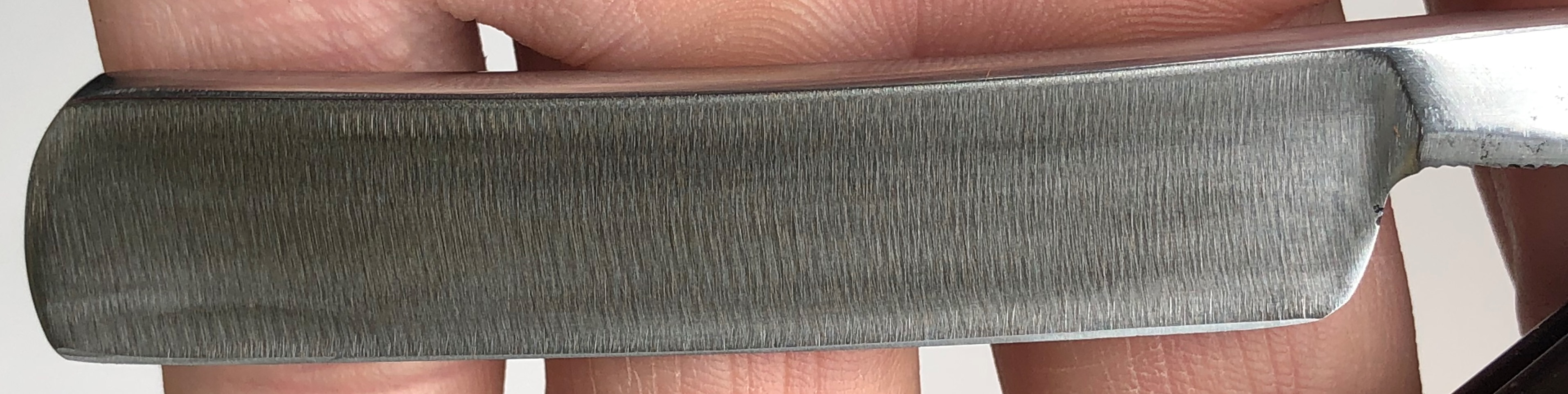 Клинок в очень хорошем и малопользованном состоянии.Бритва была разобрана, освежено полотно от патины, с сохранением небольшого элемента патины на эрле, дабы придать более естественный вид и некий налет старины на металл, в соответствии с возрастом.Ручка была заново отполирована, оригинальные пины сохранены и заново установлены. с добавлением внутренних шайб.Идеальная геометрия клинка:кромочка равномерна по всей длине.Очень неплохой и недорогой вариант для всех, кому интересно бритье клинковой бритвой. Заточена и готова к бритью.