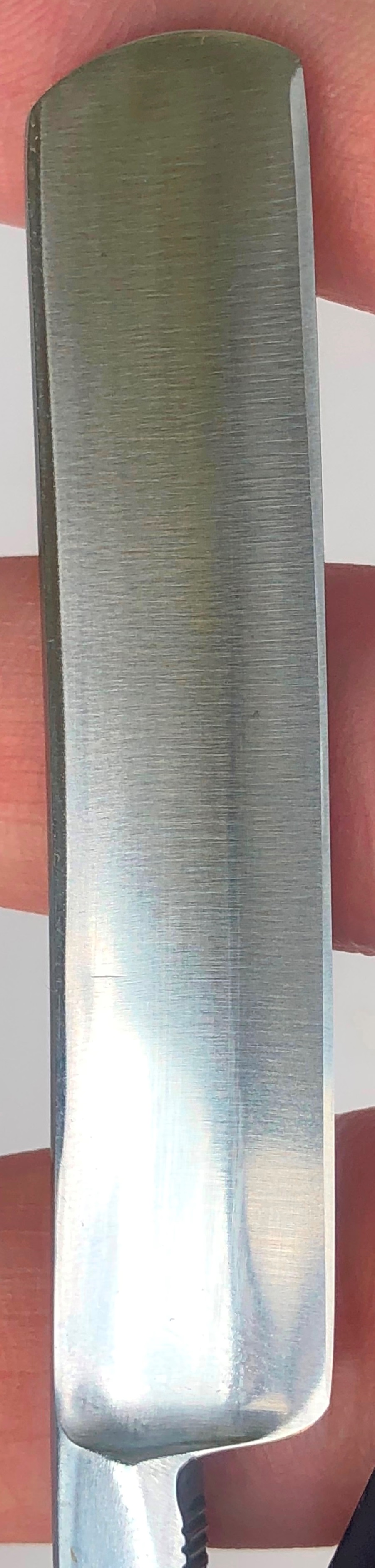 Идеальное состояние полотна,с родной шлифовкой и полировкой и остатками следов от электро-химической заводской заточки.Идеальная геометрия клинка:кромочка равномерна по всей длине.Гравировка на клинке четкая, без потертостей.