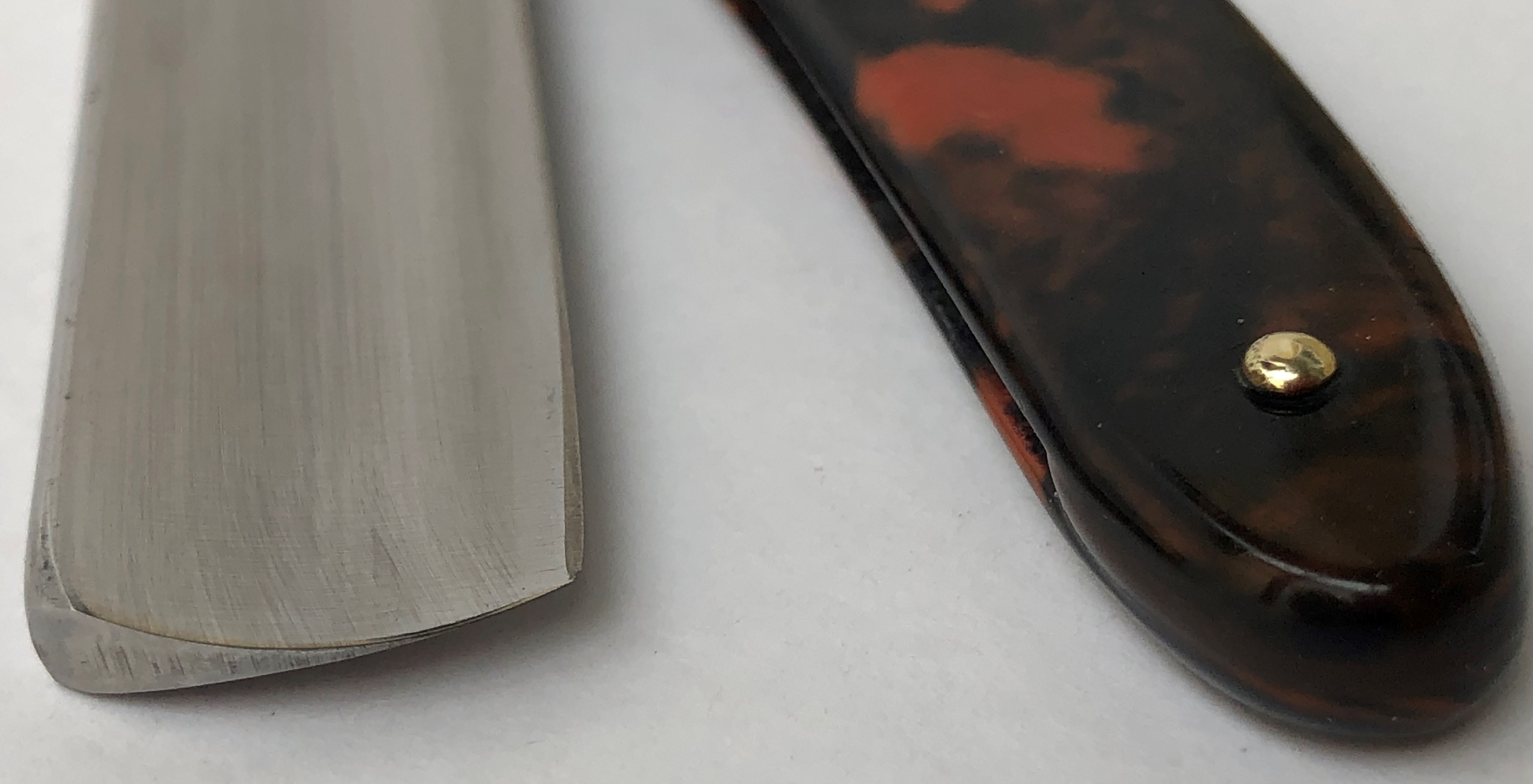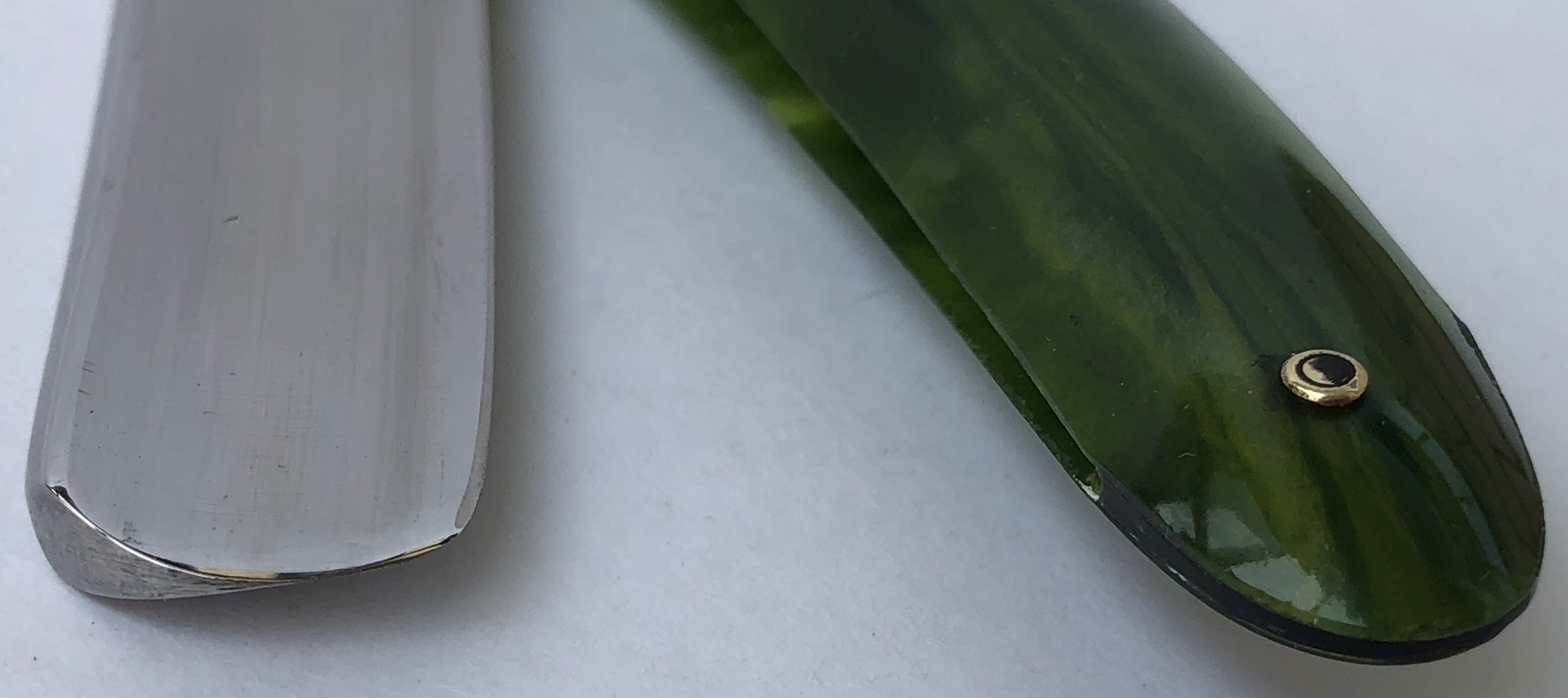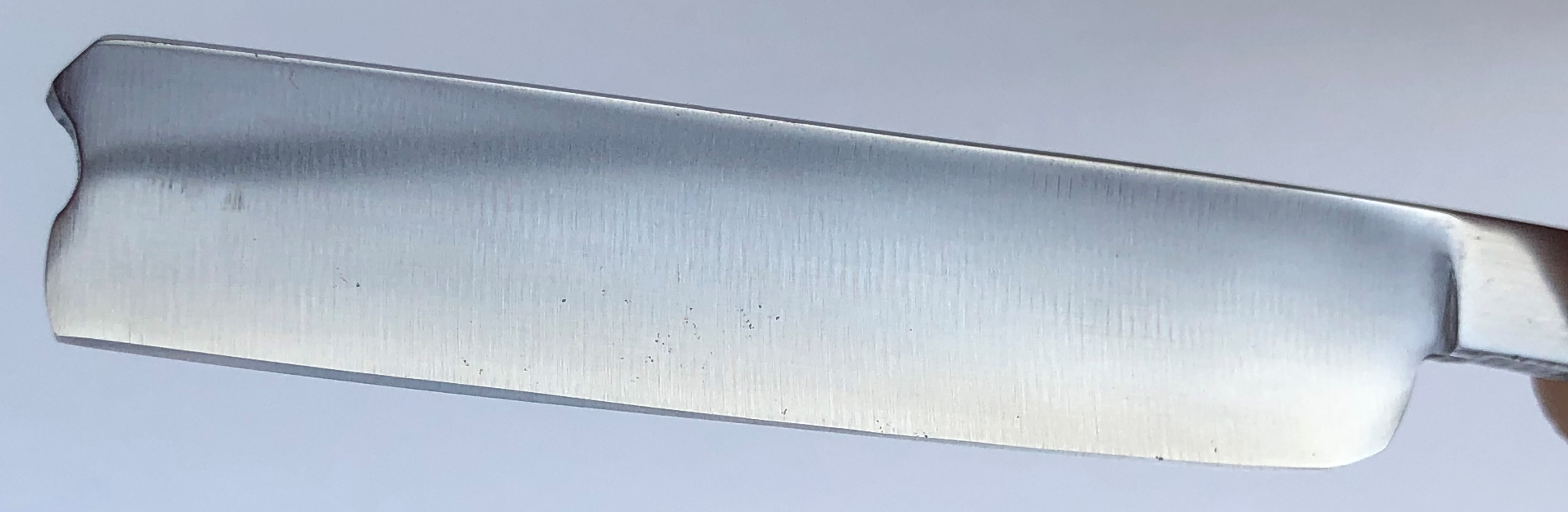 Бритва в прекрасном коллекционном, непользованном состоянии. Все оригинальное. Ничего не разбиралось и не ремонтировалось.Оригинальная шлифовка и полировка. Незначительные остатки патины не стал убирать, чтобы сохранить все в аутентичном виде.Идеальная геометрия полотна:кромочка равномерна по всей длине.