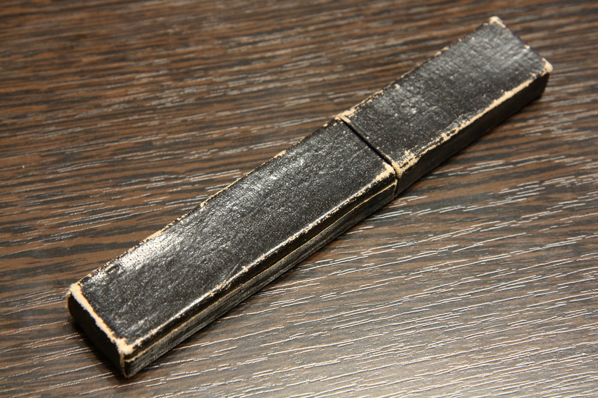 Опасная бритва завода Труд Вача Росинструмент, изготовлена в довоенный период (т.к. в 41 уже начали год на эрле ставить), из ранних, примерно 36-37 г. Ширина полотна 16 мм, все родное, футляр-сундучок от раннего СТИЗ. Вручную почистил и заточил. Подготовлена мной к бритью. На полотне остались следы времени (кромка чистая и без дефектов). Ручка оригинальная пластиковая, сталь тут старая традиционная, отличное удержание кромки, профиль близок к клину - то что нужно для жесткой щетины. Кромка бритье чувствуется на лице отчетливо. Цена - руб. К бритве рекомендую приобрести ремень для правки опасных бритв моего изготовления из итальянской кожи (подробнее на странице 4, объявления 56-58 и странице 9, объявления 127). Spoiler Show