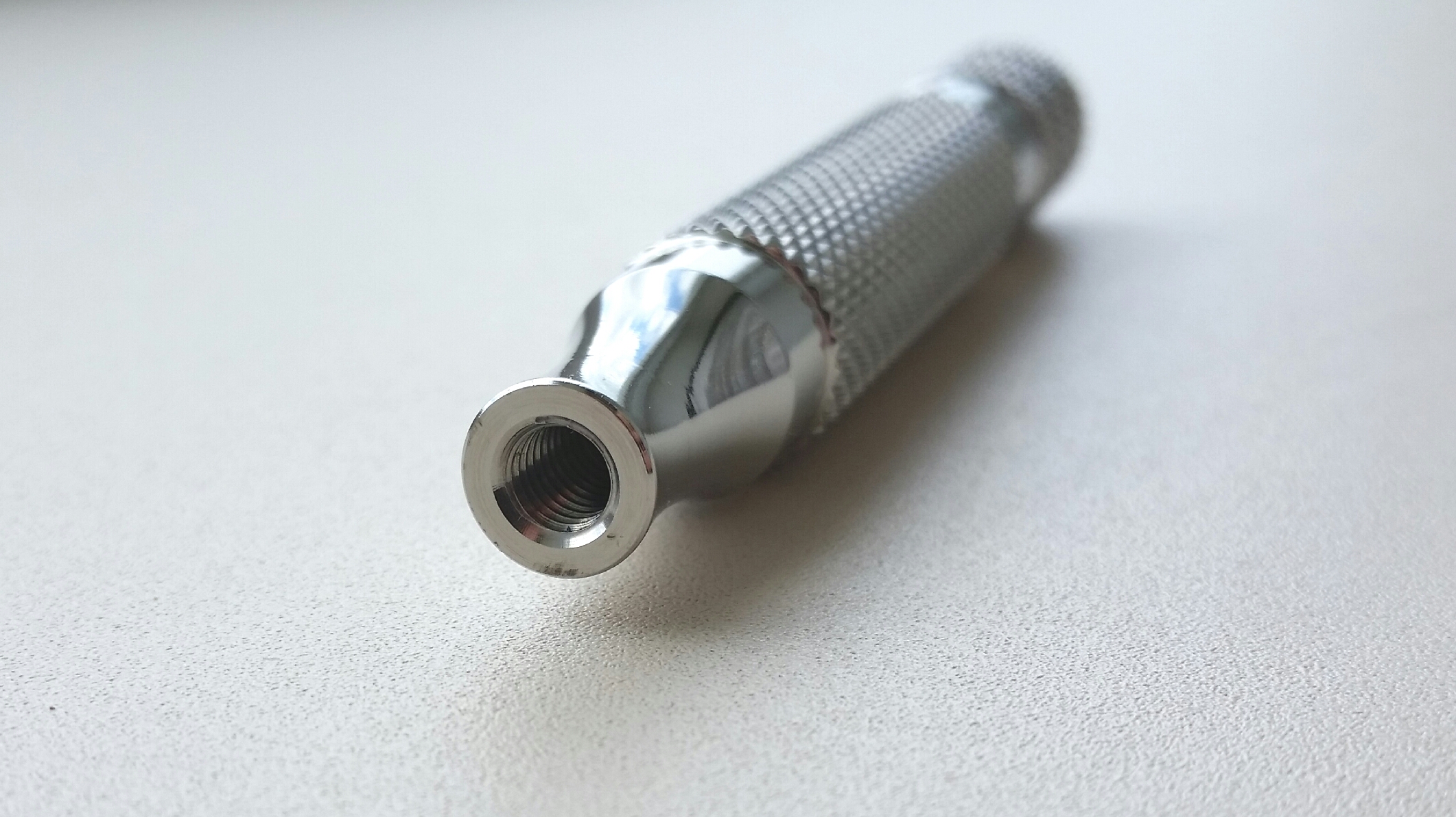 Ручка от известной фирмы Razorock, изготовлена из нержавейки морского класса, очень цепкая насечка, б/у пару раз, есть следы на месте контакта с плитой. Длина 90 мм, диаметр 12.5 мм, вес 72 гр. Стандартная резьба М5, практичная форма. Соберите свой станок для бритья, накручиваются все головы, кроме тех, что идут не со стандартной резьбой (но таких очень уж мало), например Фатип. На последнем фото голова и плита лежат для антуража и в лот не входят. Цена - руб. Spoiler Show