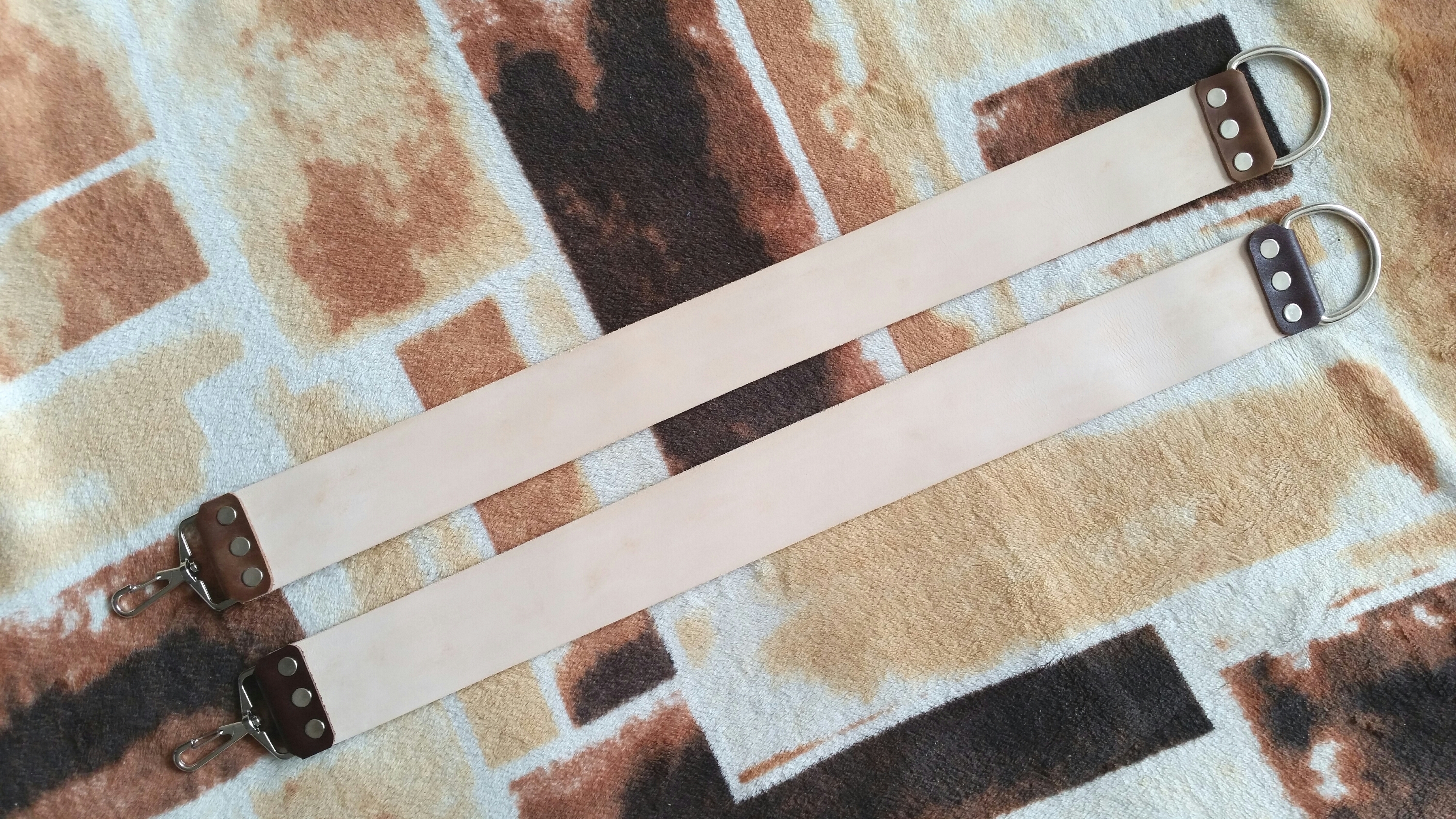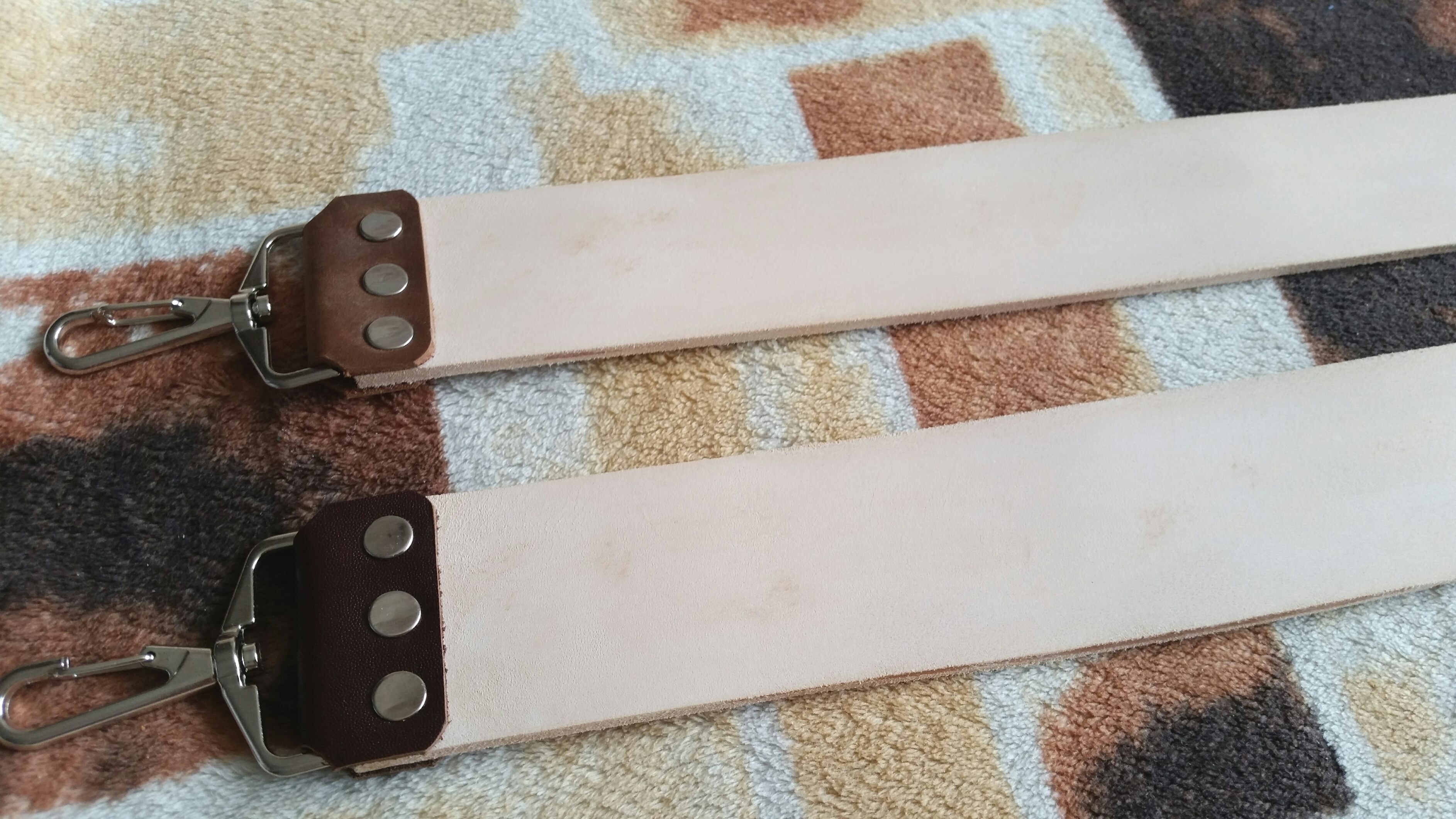 Два ремня для правки, ширина верхнего 48 мм, нижнего 51 мм, длина стандартная. Верхний продан! Сделаны из боковой части чепрака, где изначально кожа была с нарушениями. В нижней части ремней есть морщины, есть желтоватые участки, но кромка бритвы и ладонь проходит без ощущений, править будут. Оба обработаны, смазаны костным маслом. Цена нижнего - руб. Spoiler Show