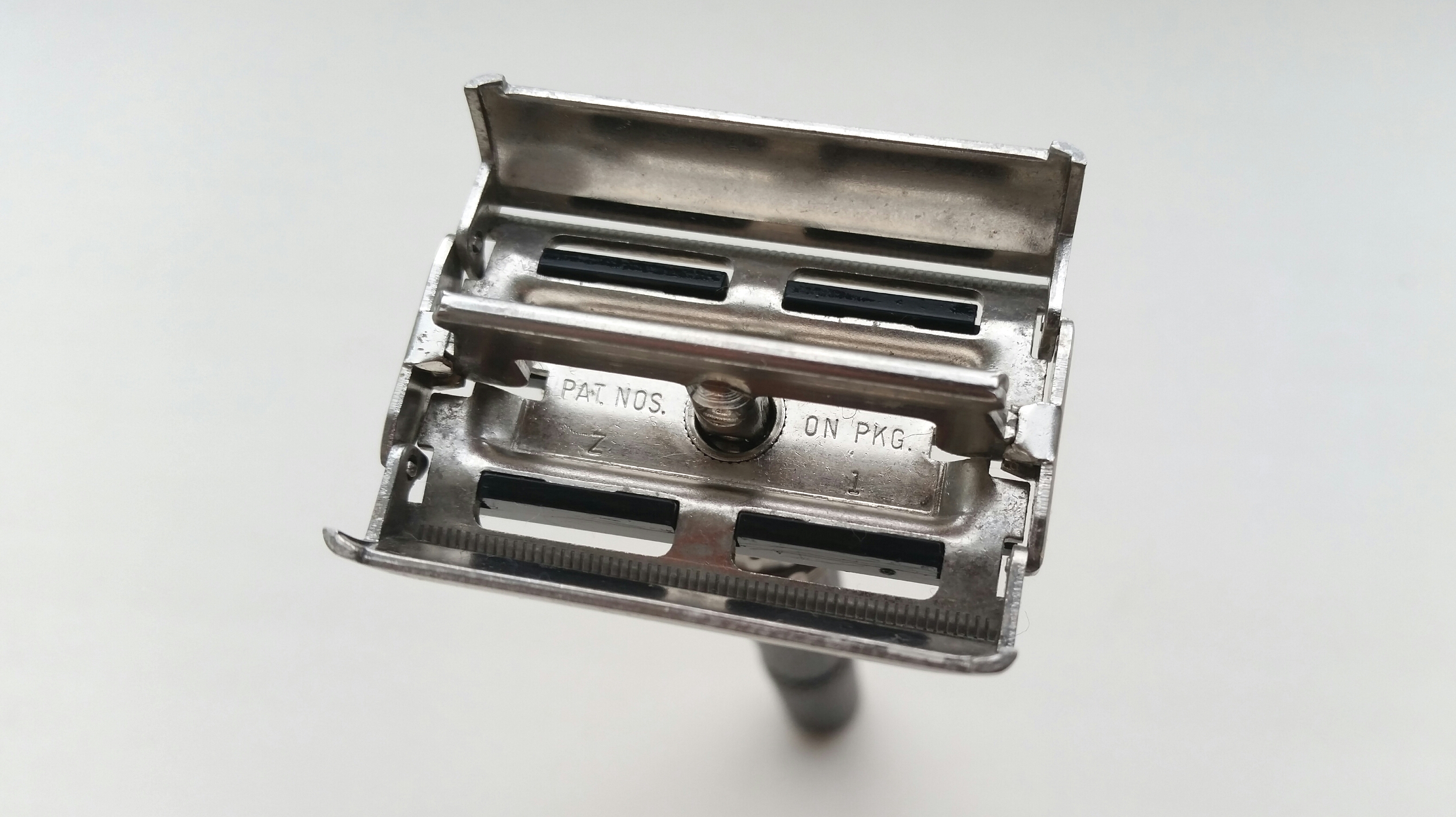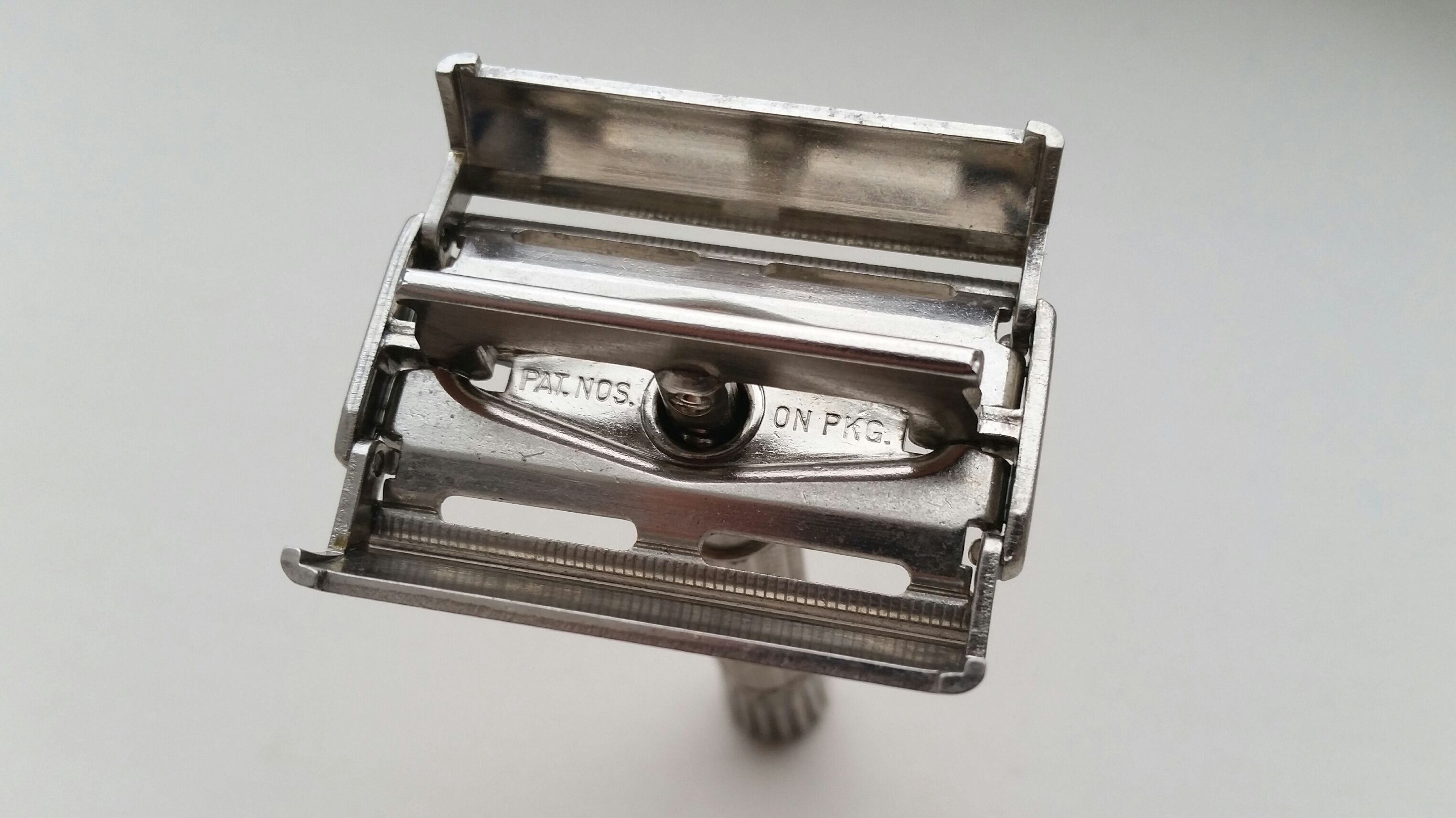Безопасная бритва Gillette Super Speed Flare Tip, США, 1958 год (код D-2), конструкция "бабочка". Станок почистил, внутри и снаружи. Механизм смазал индустриальным маслом, чтобы все крутилось веселее. Механика в порядке, открывается/закрывается штатно.
