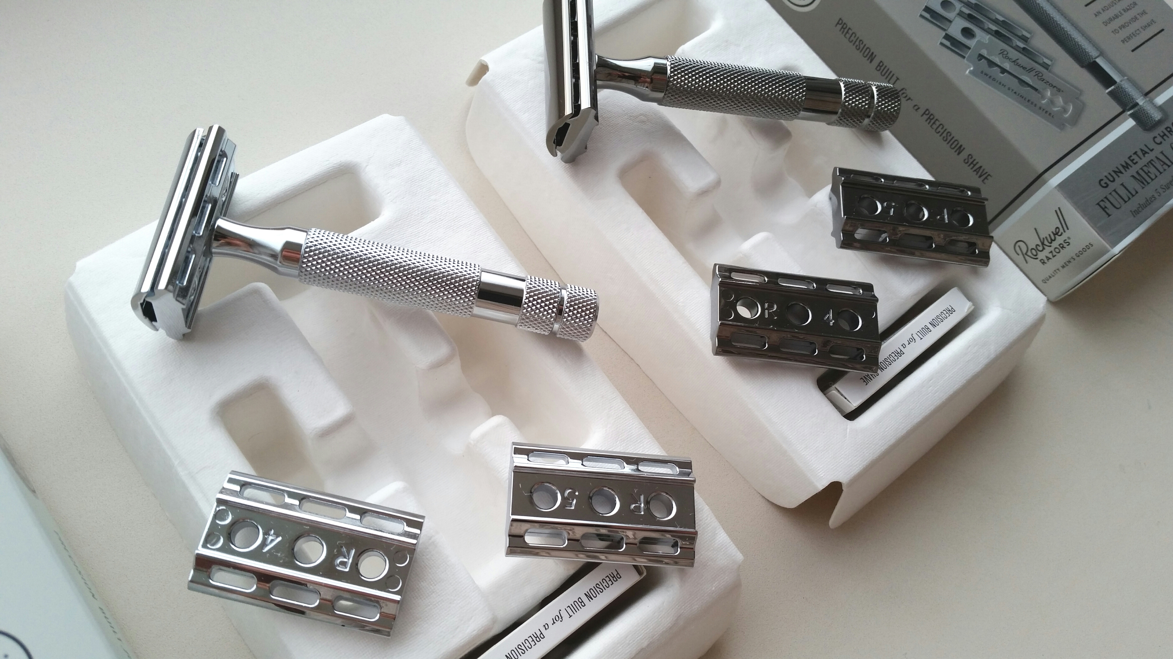 Регулируемый Т-образный классический станок для бритья Rockwell 6C, цвет Gunmetal (оружейная сталь) и White Chrome (белый хром) - на выбор. Станки новые, только добрались из заграницы, полный комплект, доставались исключительно для фото (и проверки на состыковку частей, на фото собраны с прокладкой, чтобы не было следов от ручки, прокладка в комплект не входит). Без дефектов, повреждений, брака.