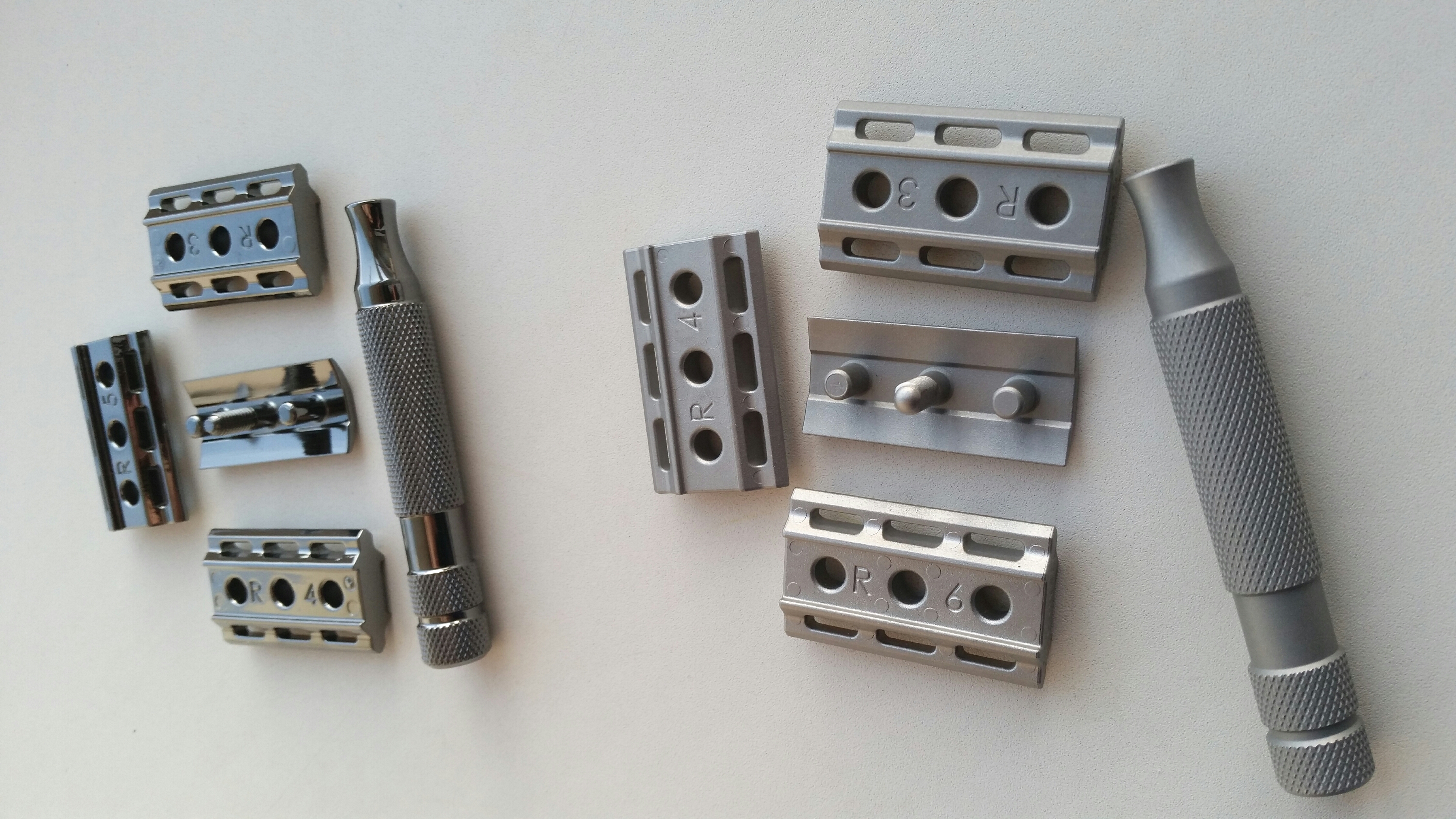 Регулируемые безопасные бритвы СССР, слева-направо: