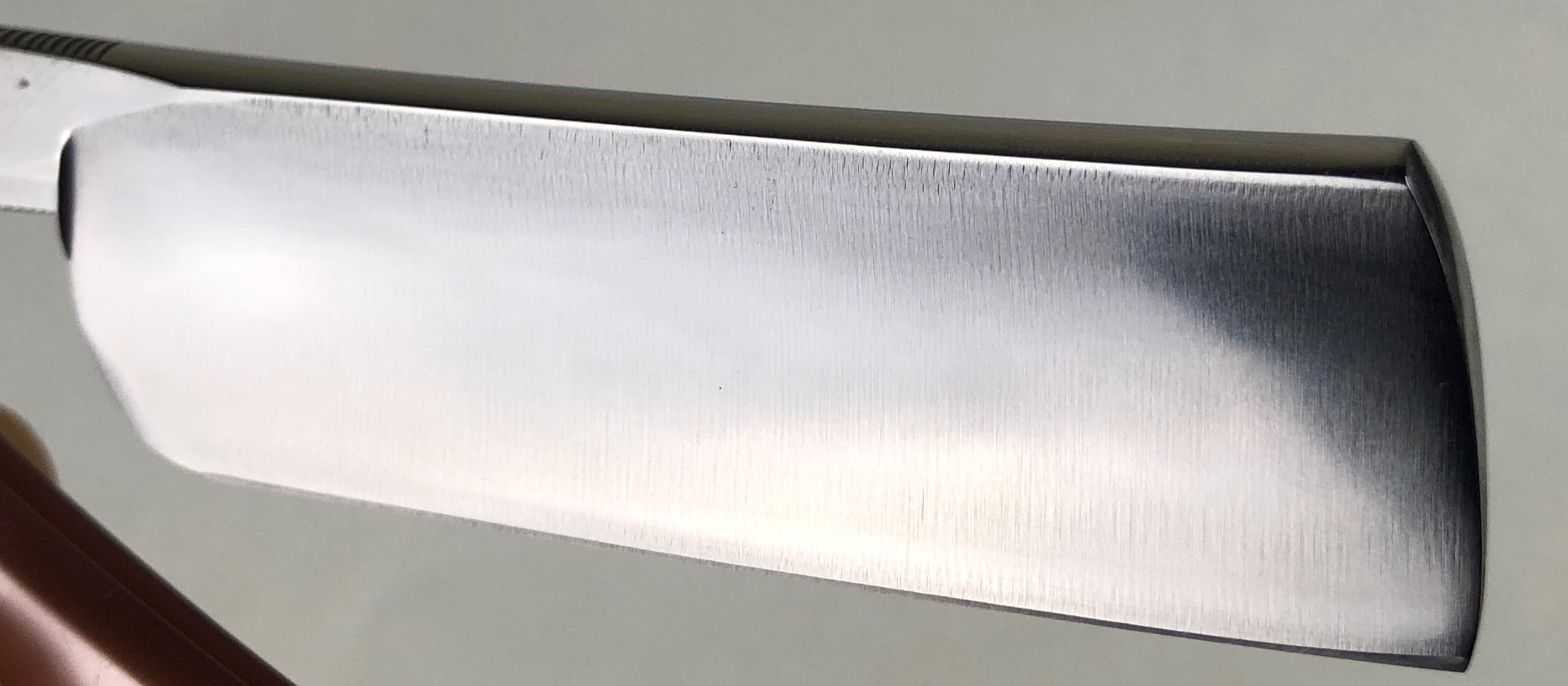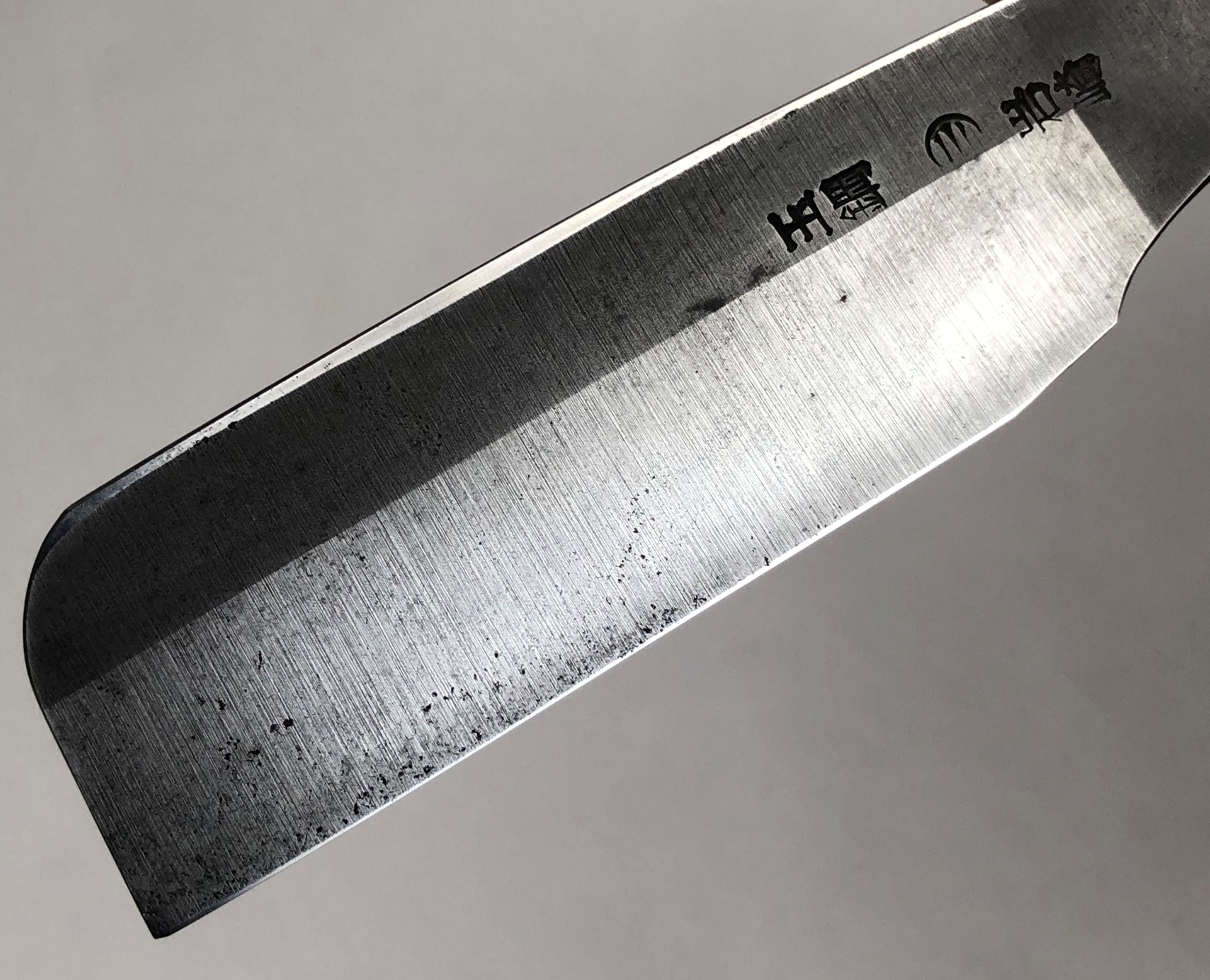 Бритва с минимальными следами пользования.По всей видимости была заточена однажды, а потом просто доводилась на финишниках.Сторона "ура" имеет прекрасную многолетнюю патину.Сторона "омоте" оригинальный грубый гринд.Идеальная геометрия изготовления. Кромочка на "ура" равномерная и еле заметна.На "омоте" шире, но также равномерна по всей длине.Сама сталь Тамахагане каким то магическим образом привлекает всех любителей японской Бритвы и заставляет искать по всему миру то, что сейчас еще где то осталось от этой самой известной семьи.С бритвой ничего не делал, а только тряпочкой протер, как бы это смешно не звучало для многих посвящённых товарищей..