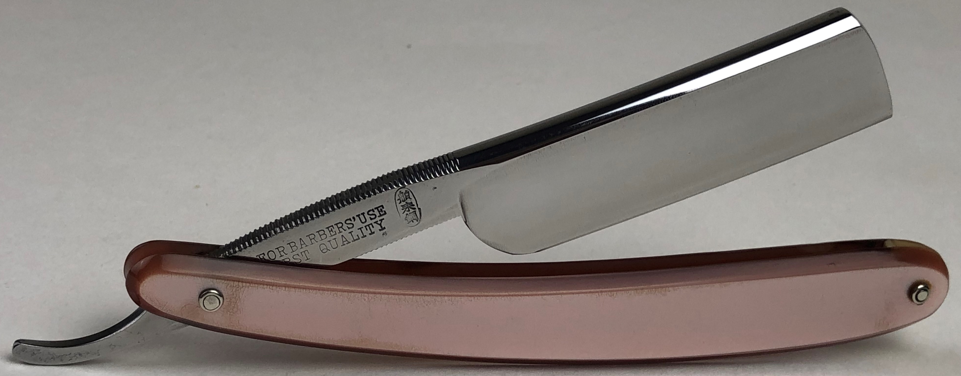 Бритва в очень хорошем состоянии, близком к идеальному.Без следов пользования.Была разобрана, немного освежено полотно и почищен район осевого пина и снова собрана, с заменой оригинальных пинов на немецкие двух-цветные втулки.Идеальная геометрия клинка:кромочка равномерна по всей длине.Сталь чистая , без дефектов. Бритва очень удобна для обучения не только как брить, но и как бриться.Укороченное полотно даёт возможность легко подобраться в самые труднодоступные места.Бритва заточена и готова к пользованию.