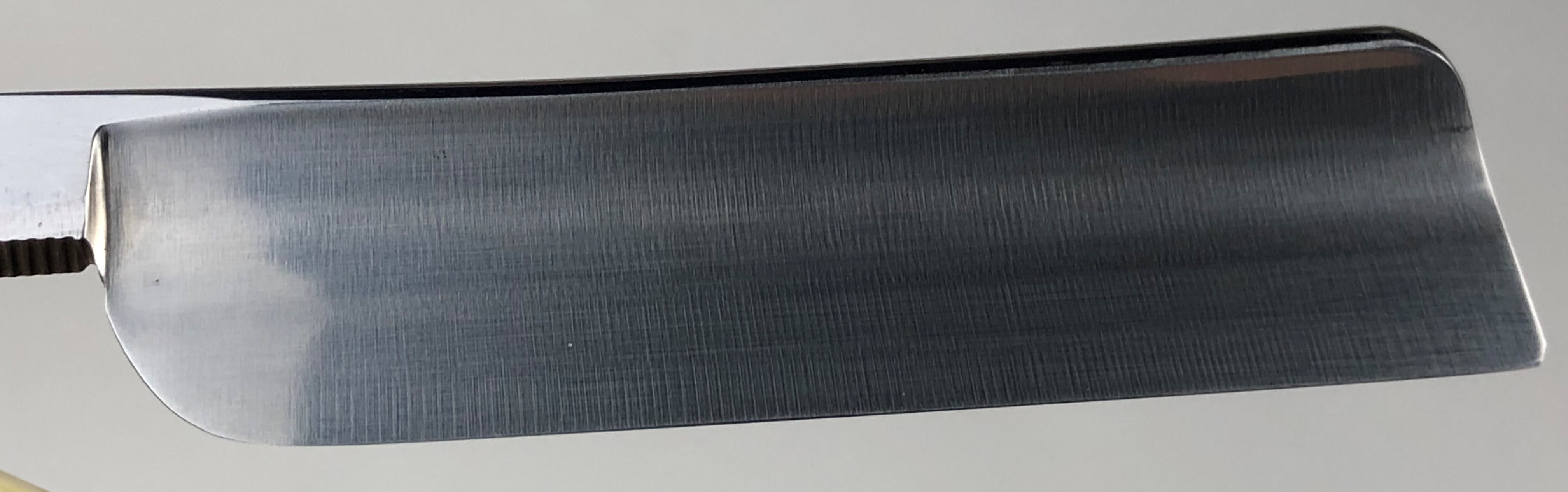 Бритва не разбиралась и не ремонтировалась.Без следов пользования. Оригинальная шлифовка. Полирнул немного, для восстановления былого блеска.Сталь чистая, без дефектов. Идеальная геометрия полотна.Заточена и готова к бритью. Совершенно бюджетный вариант для новичка.