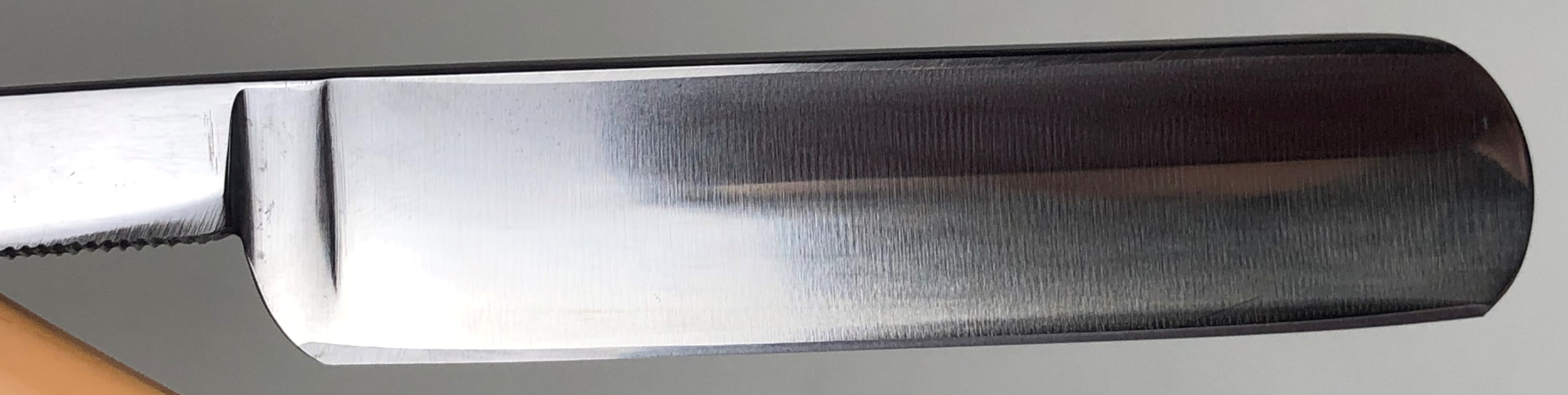 Бритва не разбиралась и не ремонтировалась.Без следов пользования. Оригинальная шлифовка. Полирнул немного, для восстановления былого блеска.Сталь чистая, без дефектов. Идеальная геометрия полотна.Заточена и готова к бритью. Совершенно бюджетный вариант для новичка.