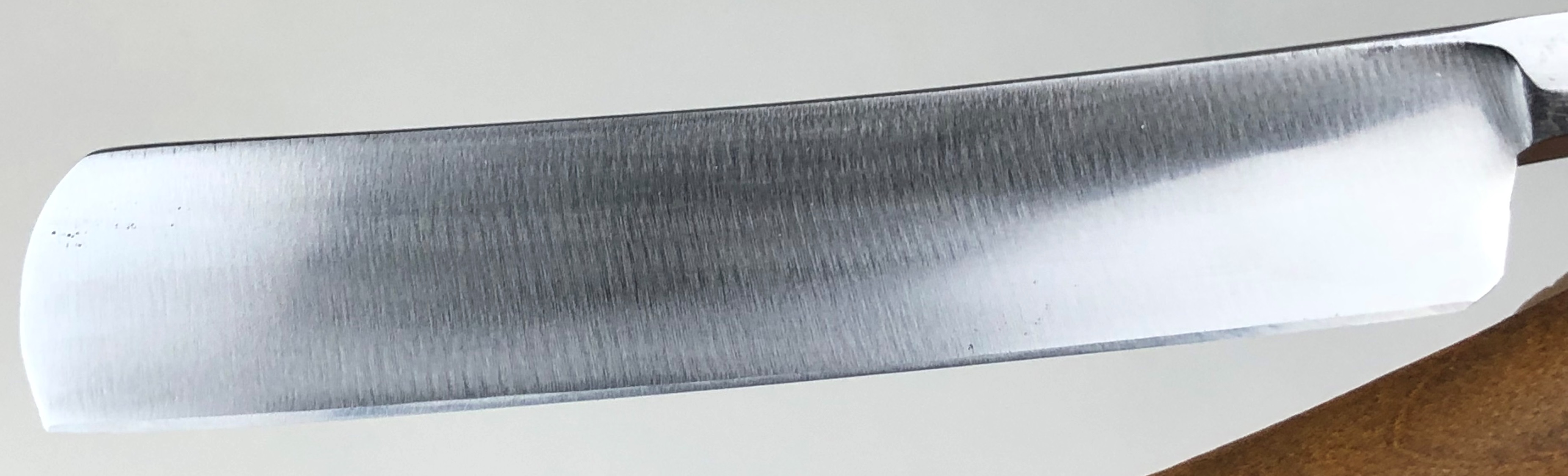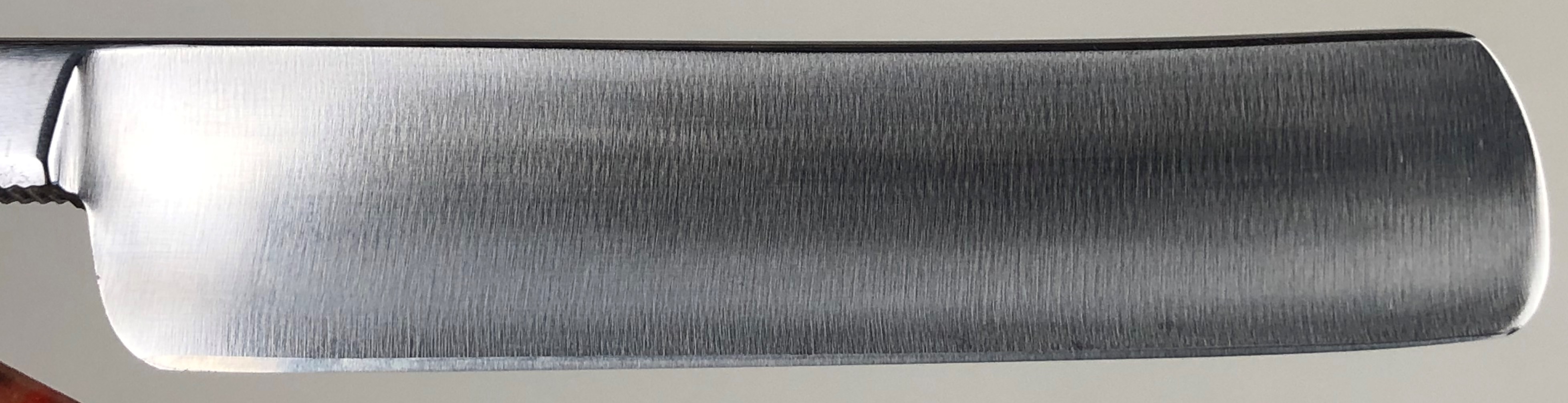 Бритва не разбиралась и не ремонтировалась.Без следов пользования. Оригинальная шлифовка. Полирнул немного, для восстановления былого блеска.Сталь чистая, без дефектов. Идеальная геометрия полотна.Заточена и готова к бритью. Совершенно бюджетный вариант для новичка.