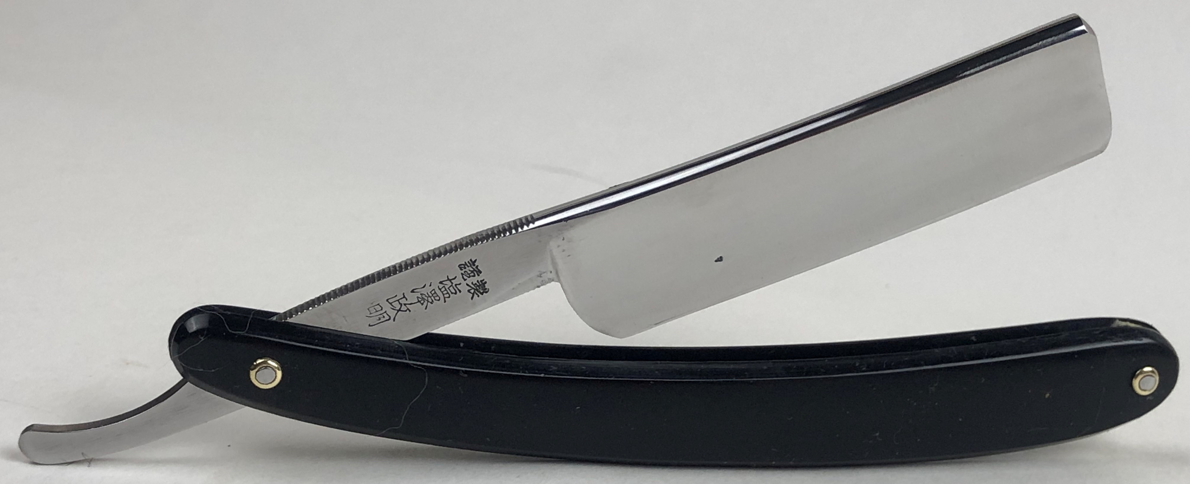 Высококачественная бритва в очень хорошем состоянии, без активных следов пользования.Была разобрана, для приведения косметических работ.Умеренно отшлифован и отполирован клинок.Заменены пины на втулки, с добавлением внутренних шайб.Идеальная геометрия:кромочка равномерна по всей длине. Сталь и кромка чистые, без видимых дефектов. Красивая японская классика, созданная в евро стиле.Не пропустите недорогую, но качественную вещь. Заточена и готова к бритью.