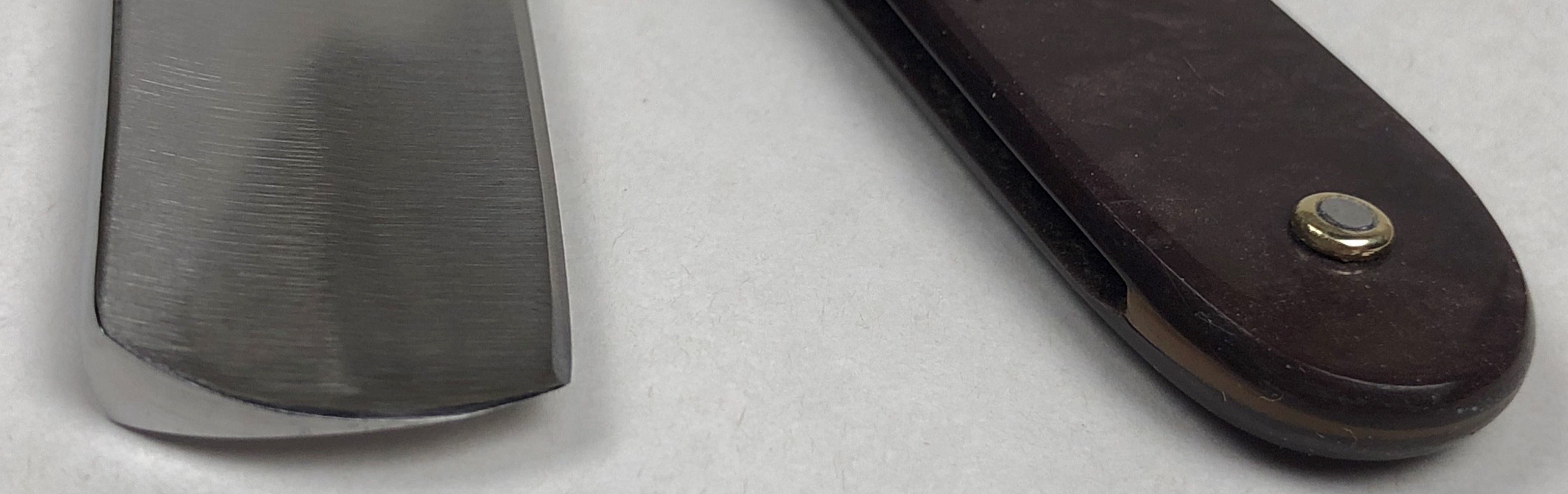Бритва в прекрасном состоянии.Была разобрана и приведена в порядок косметическими минимальными работами.Поставил новые пины и добавил внутренние шайбы.Идеальная геометрия полотна:кромочка равномерна по всей длине.Сталь чистая, без дефектов. Заточена и готова к бритью. Отличный и недорогой вариант для новичка.