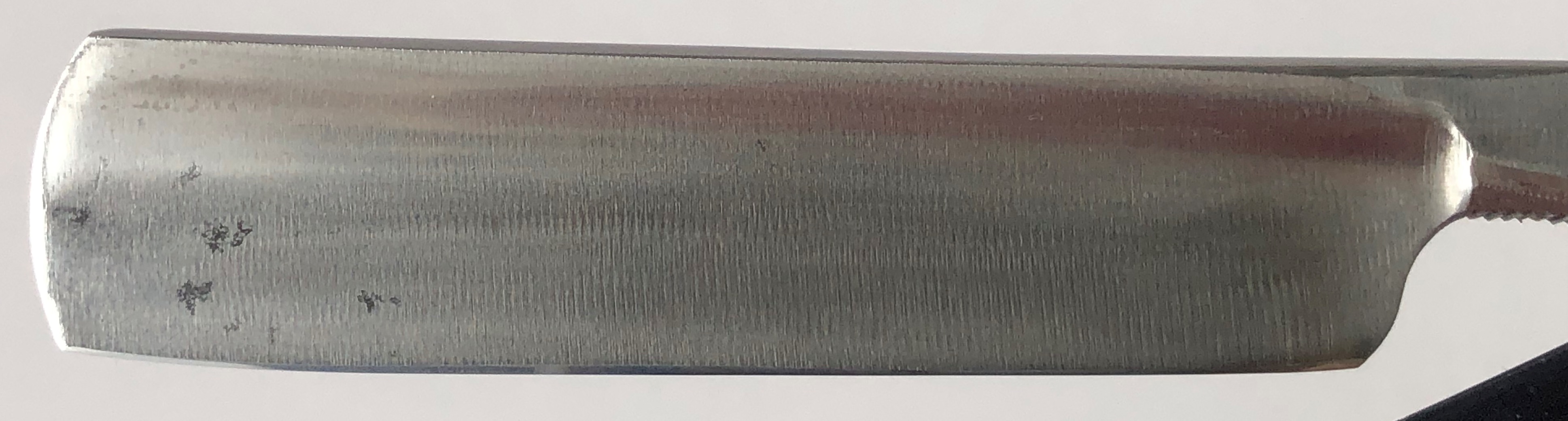 Бритва не разбиралась и не ремонтировалась. Все в оригинале. Заводская заточка была переделана под нормальное бритье.За исключением небольшого и малозначительного окисления с одной стороны полотно, все чисто, без дефектов. Геометрия приближена к идеальной.