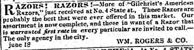 Адрес в Джефферсонвилл, штат Индиана вероятно принадлежал дилеру R.H. Gresham's Emporium, который продавал, в том числе и бритвы Гилкриста.