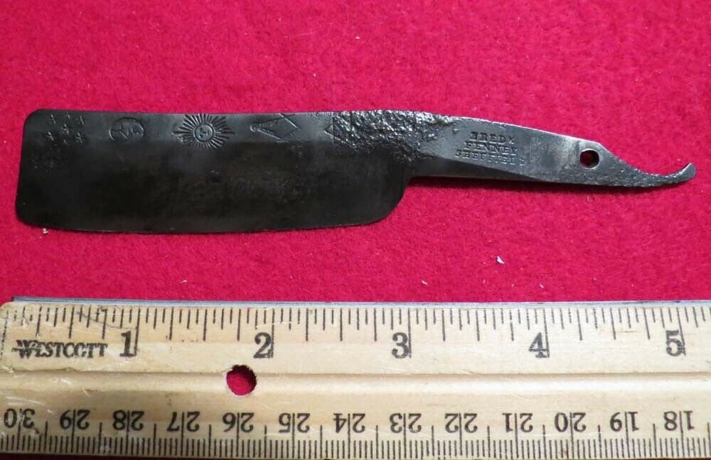 F Fennel Tally Ho Warranted..Sheffild. Первая половина XIX века. Гравировка на клинке :.E pluribus unum — латинское выражение, в переводе с означающее «Из многих — единое». Эти слова принадлежат Цицерону (речь «О достоинствах»). Ручка рог, к сожалению новодел, но новодел неплохой. Размер клинка 8/8. 25+ мм. Про качество и комфортность бритья умолчу. Spoiler Show Боишься - не делай, делаешь - не бойся, а сделал - не сожалей.