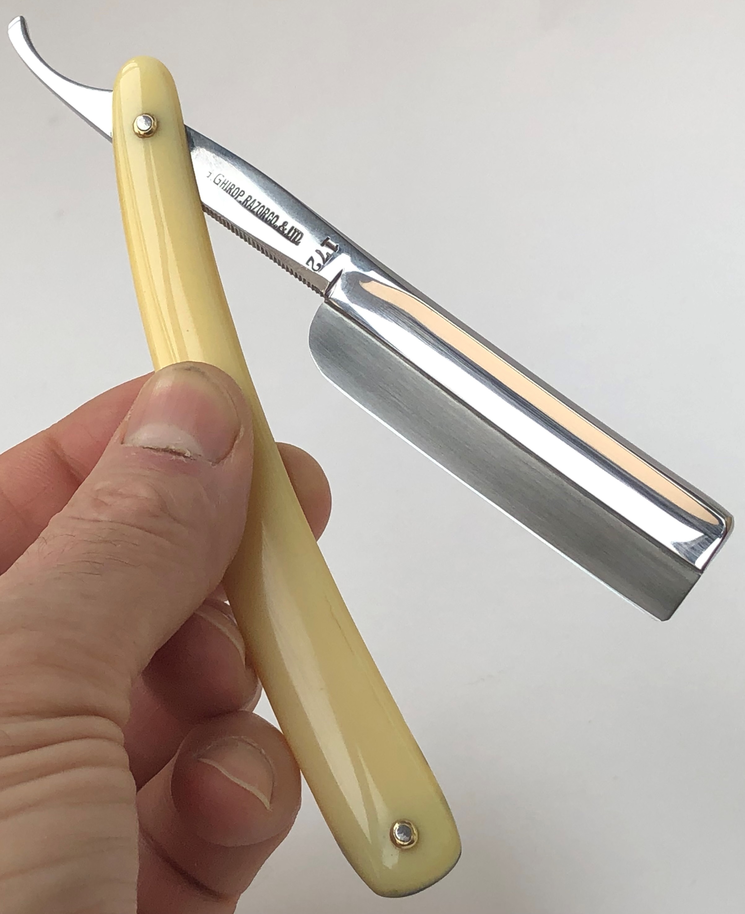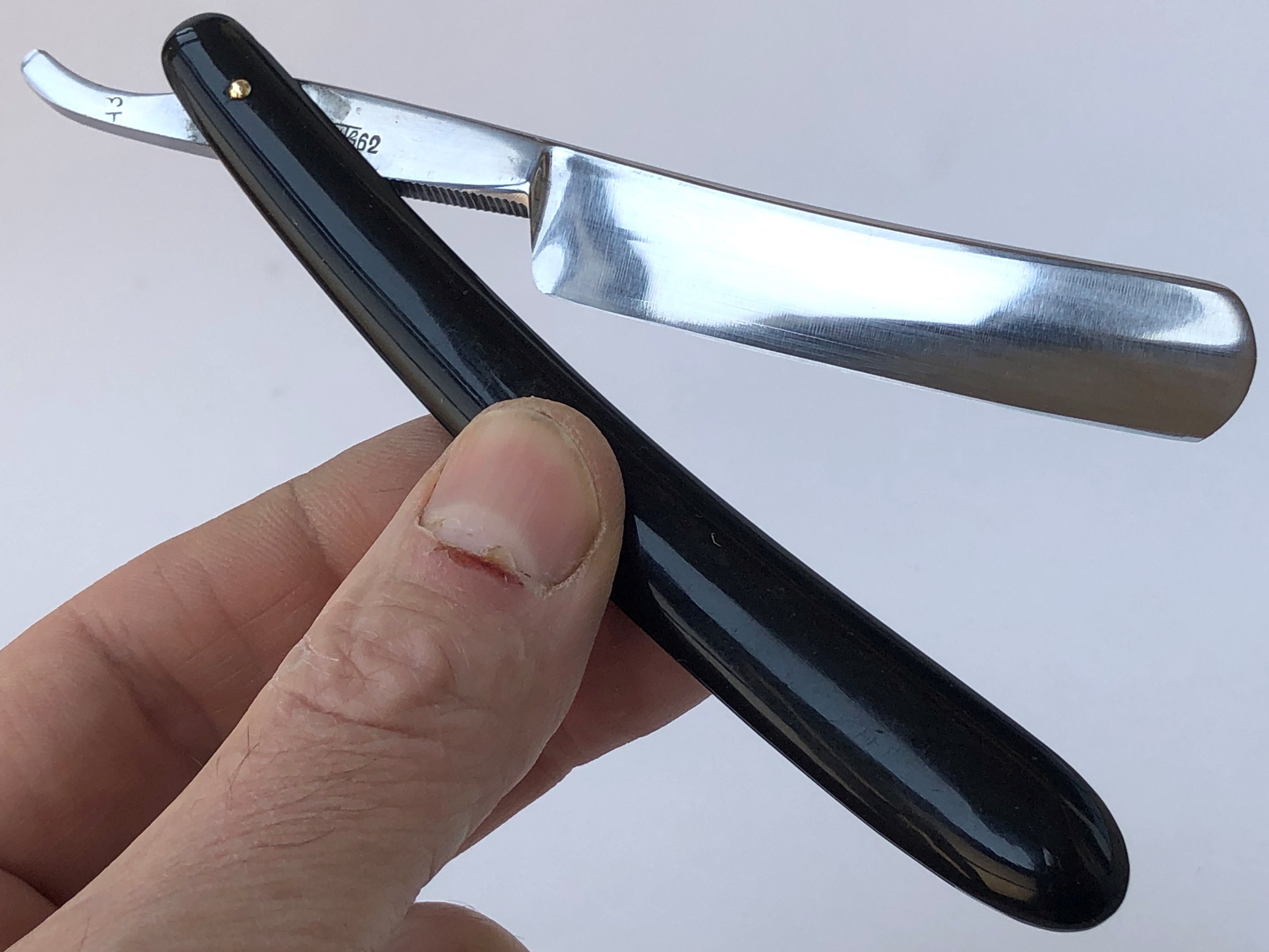 Бритву заточил и с удовольствием лично протестировал, так как всегда приятно испробовать что то действительно редкое.Бритье порадовало:чистое, мягкое, без раздражения, с характерным "шуршанием" сбриваемой щетины.Думал, с чем можно сравнить данную вещь и наверное соглашусь сам с собой, что напоминает нечто среднее между немцами и англичанами начала прошлого века.Очень качественная углеродка.